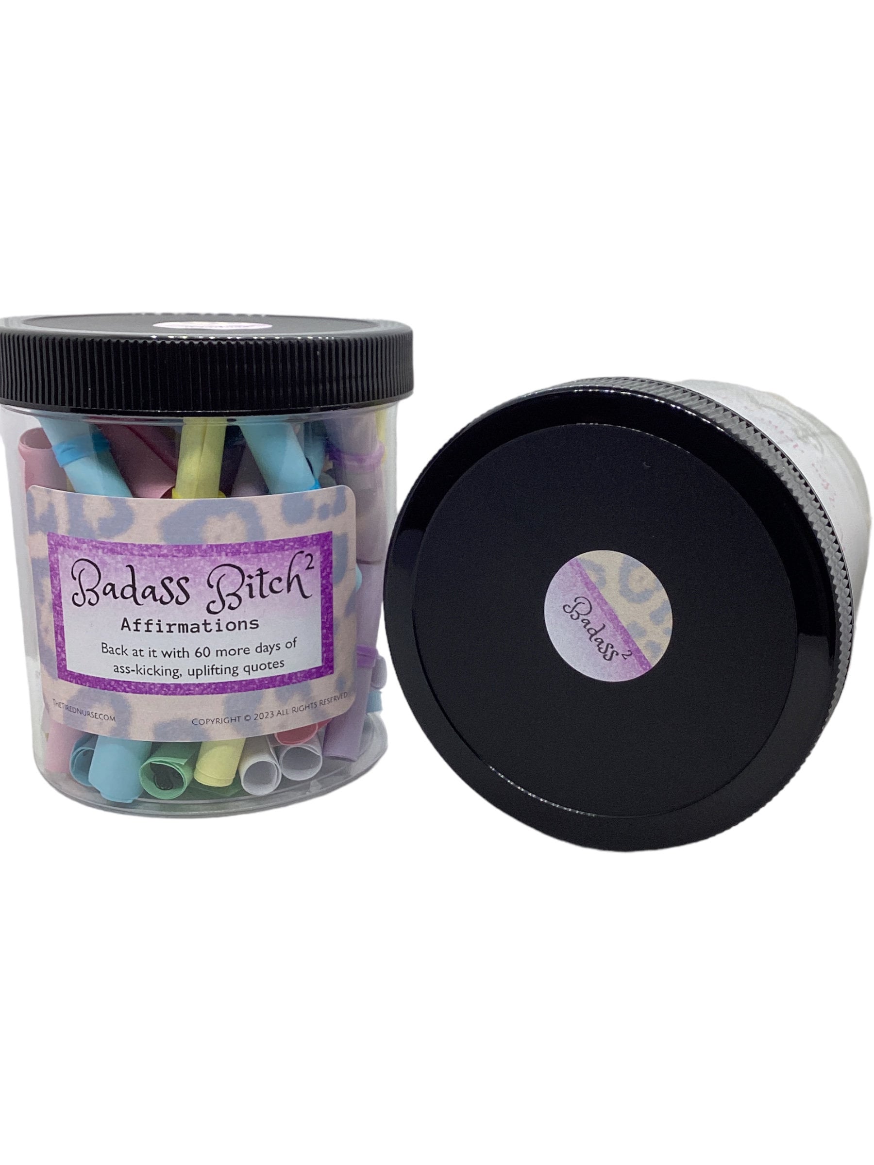 Introducing the bold and improved 2nd edition of the Badass Bitch Affirmation Jar - a powerful dose of empowerment and confidence for strong women! 🚀 This unique jar features a brand new collection of 60 hand-picked affirmations, specially curated to inspire and uplift the badass soul.
