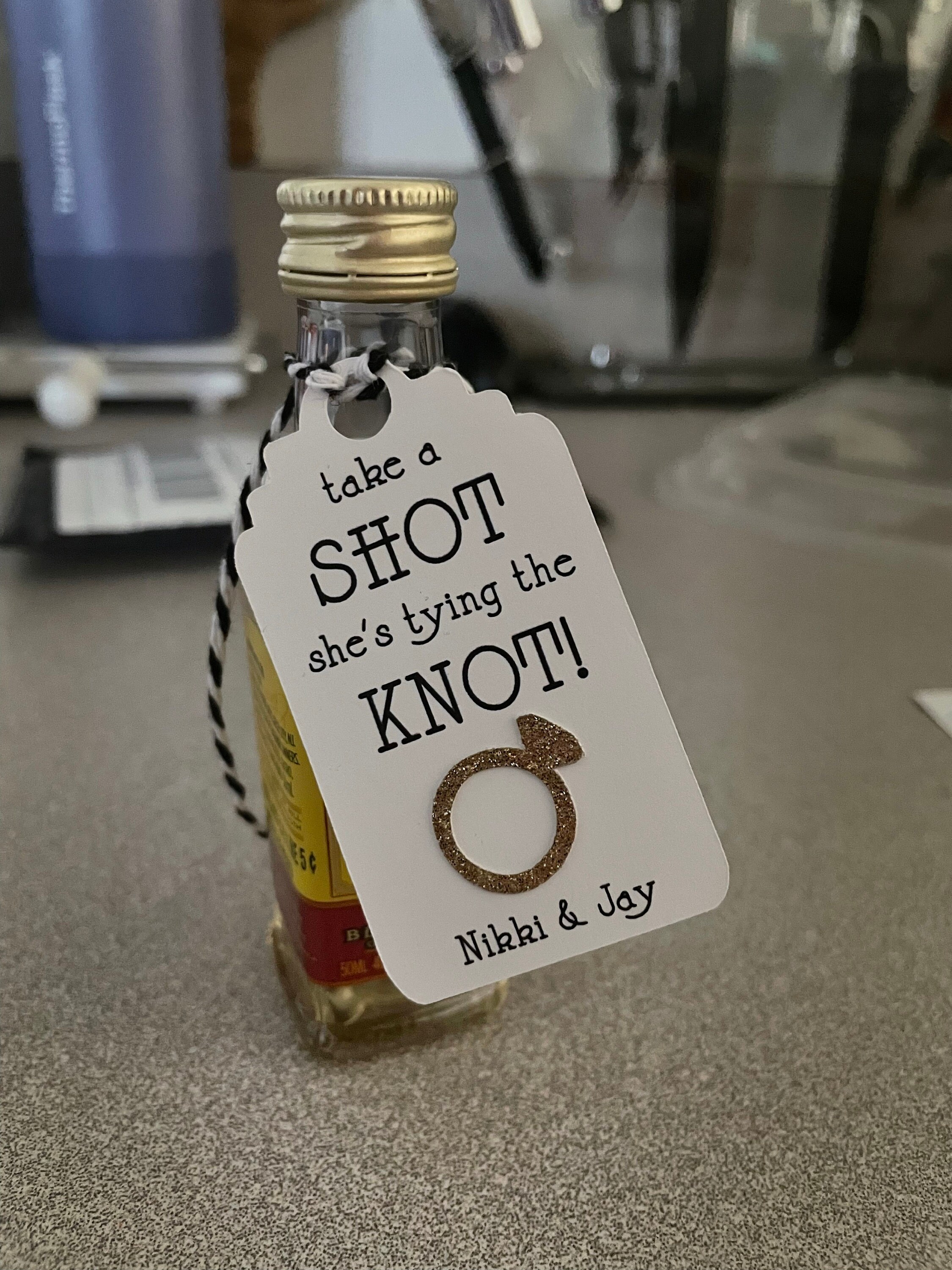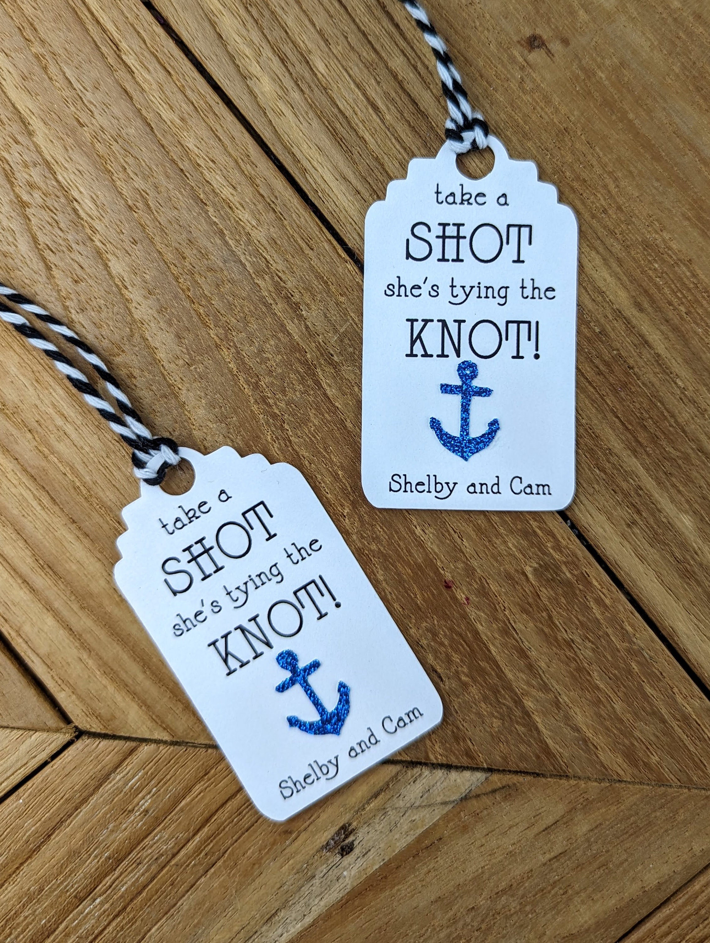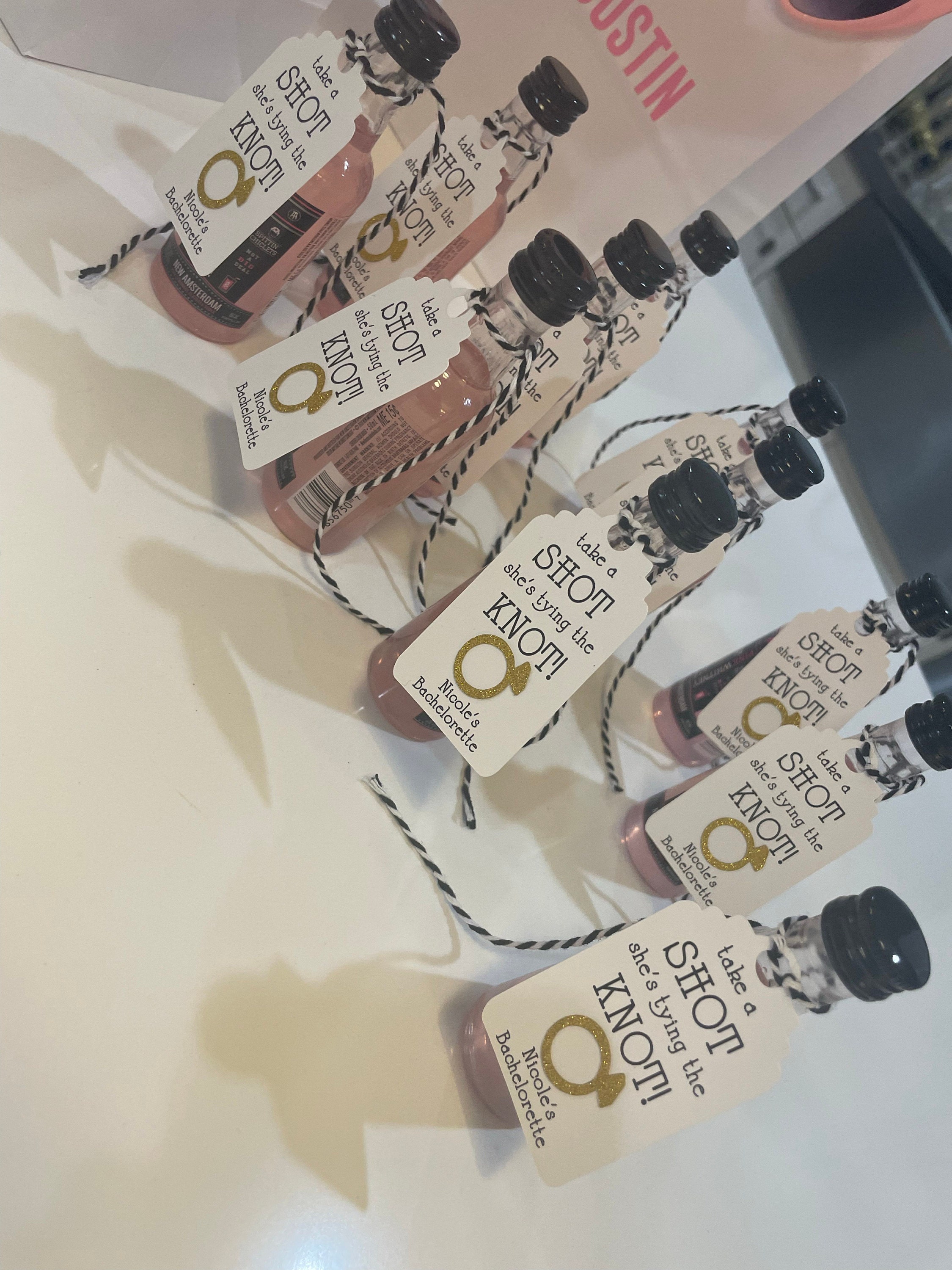 Simply tie the tag to your favorite mini wine bottle, and you have a fun way to welcome guests to your celebration or thank them for coming!