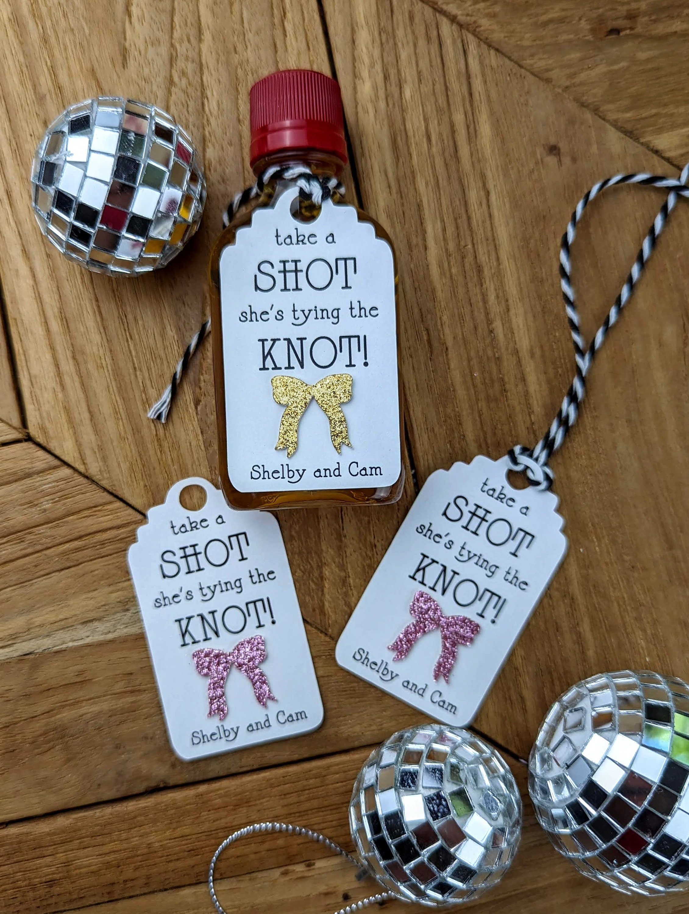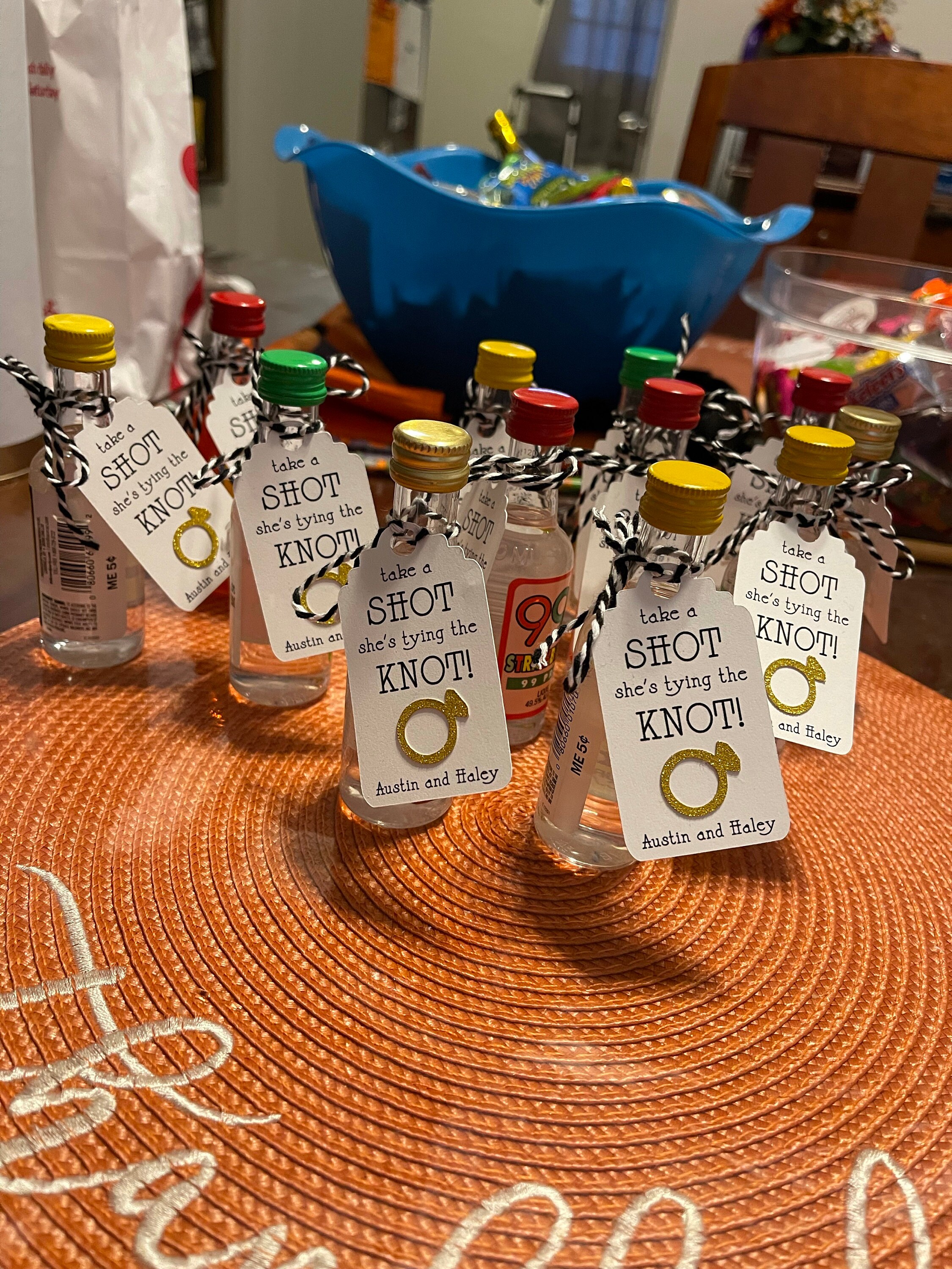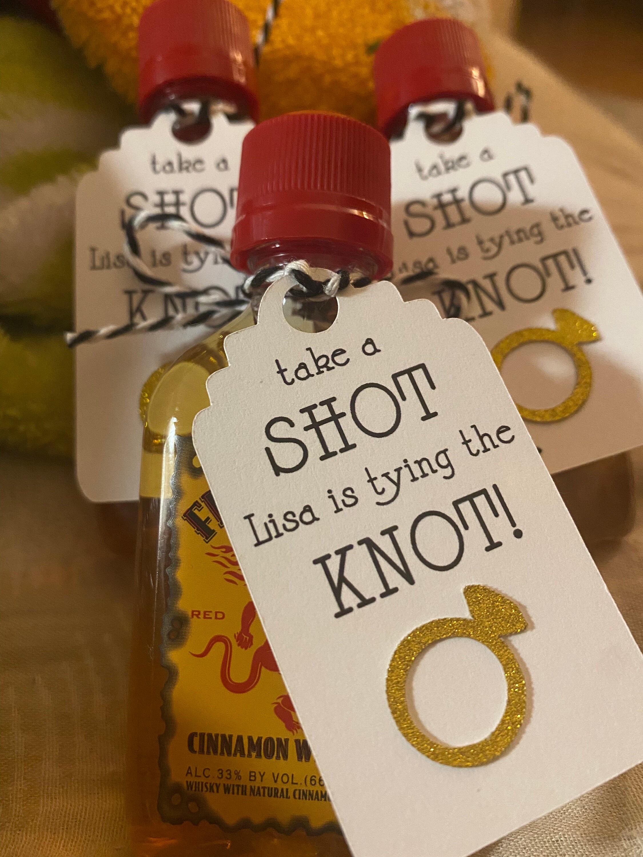 Simply tie the tag to your favorite mini wine bottle, and you have a fun way to welcome guests to your celebration or thank them for coming!