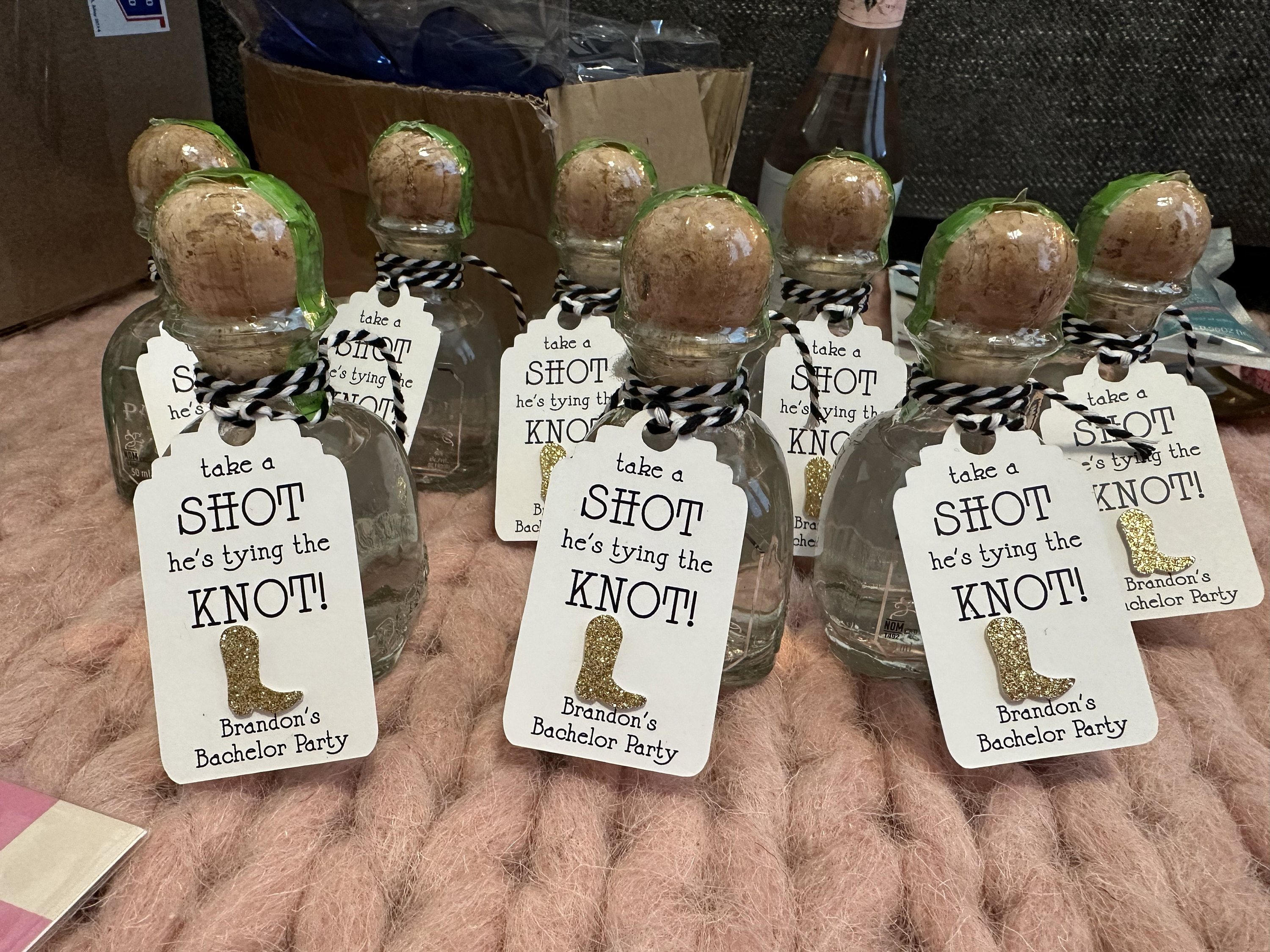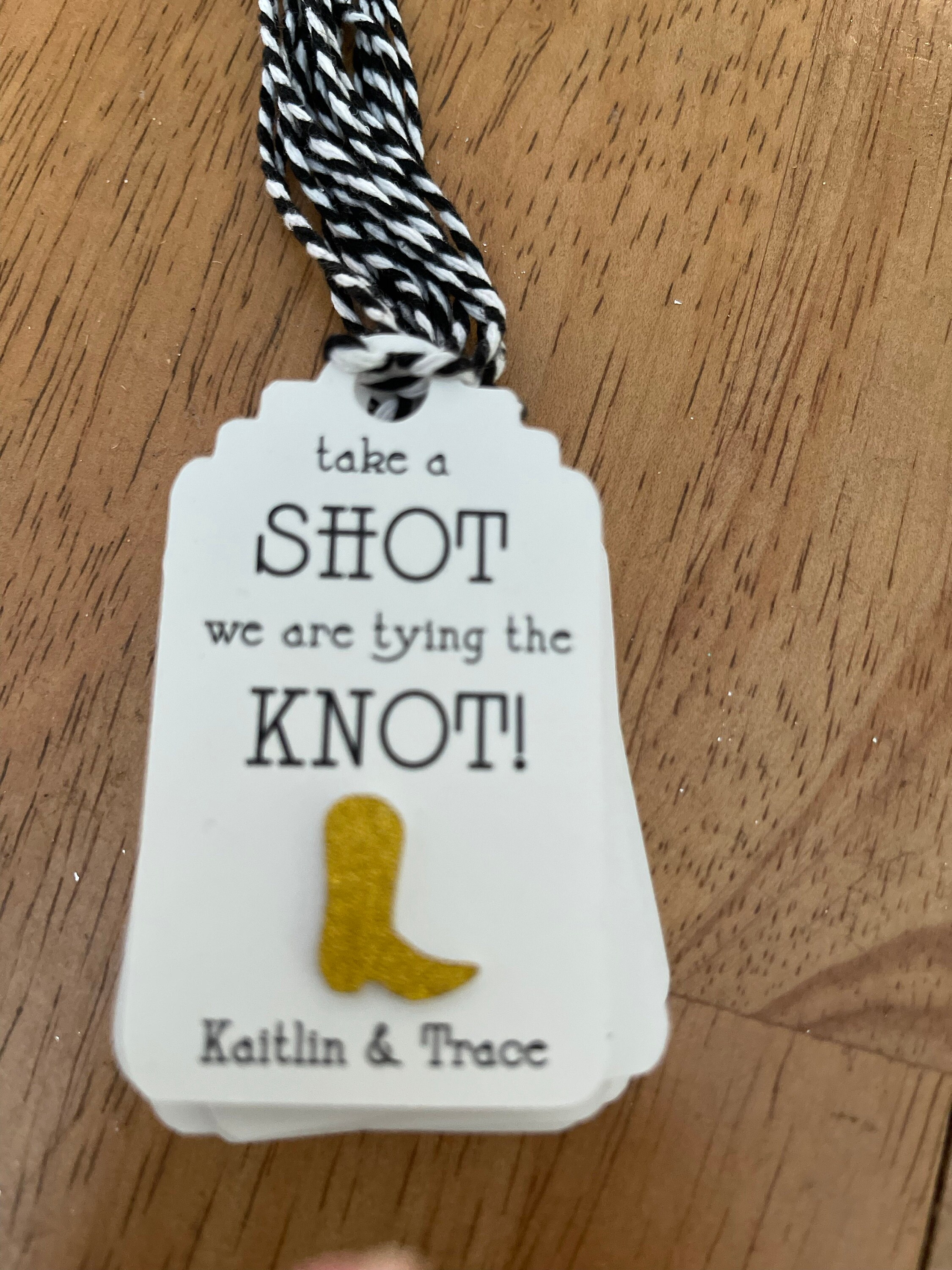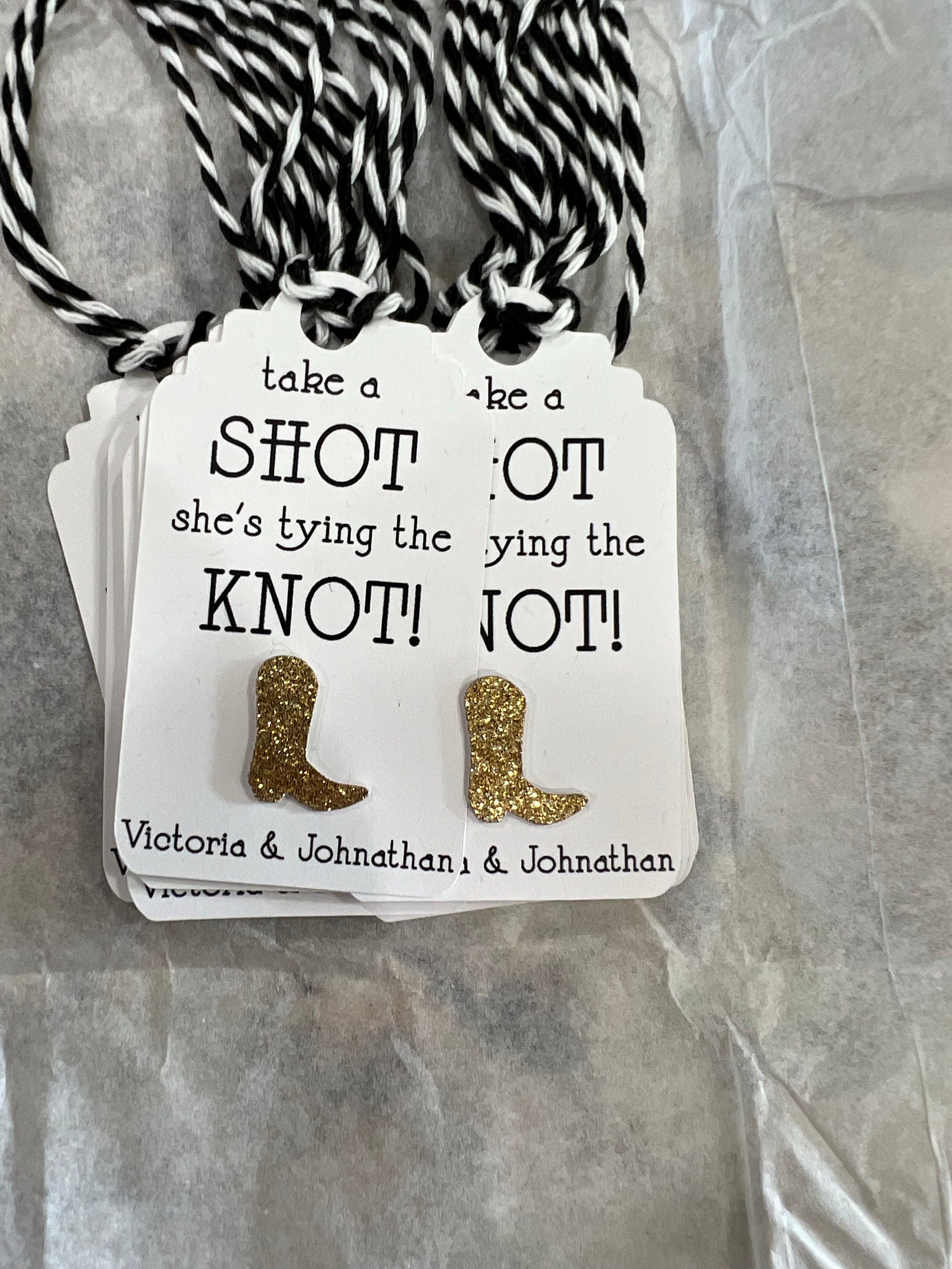 These photo booth tags are a great way to personalize a bachelorette party, wedding reception, or wedding reception, and a great way to thank your guests for coming! The gold cowboy boot pattern is perfect for a Nashville bachelorette party, Austin bachelorette party, or country bachelorette party.