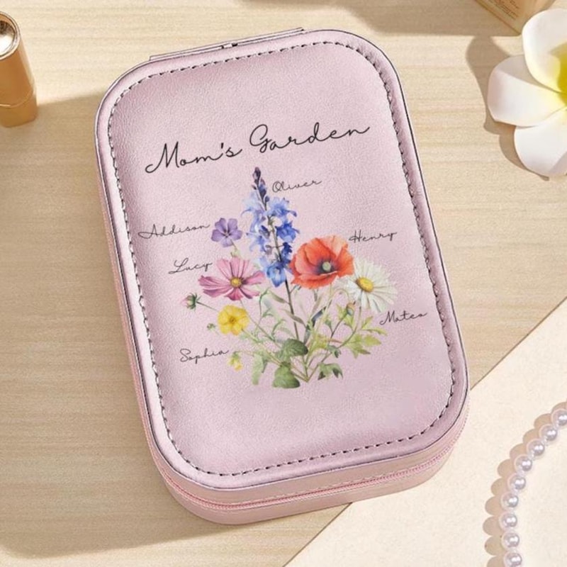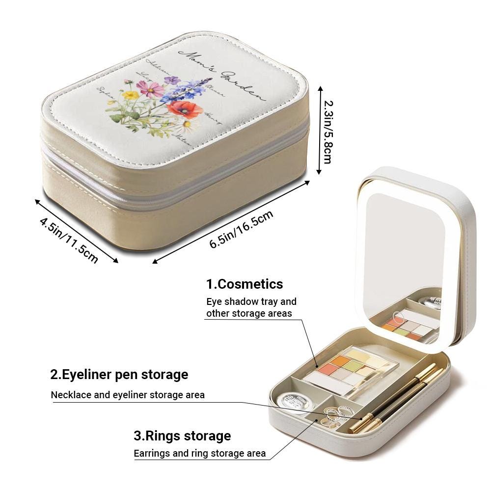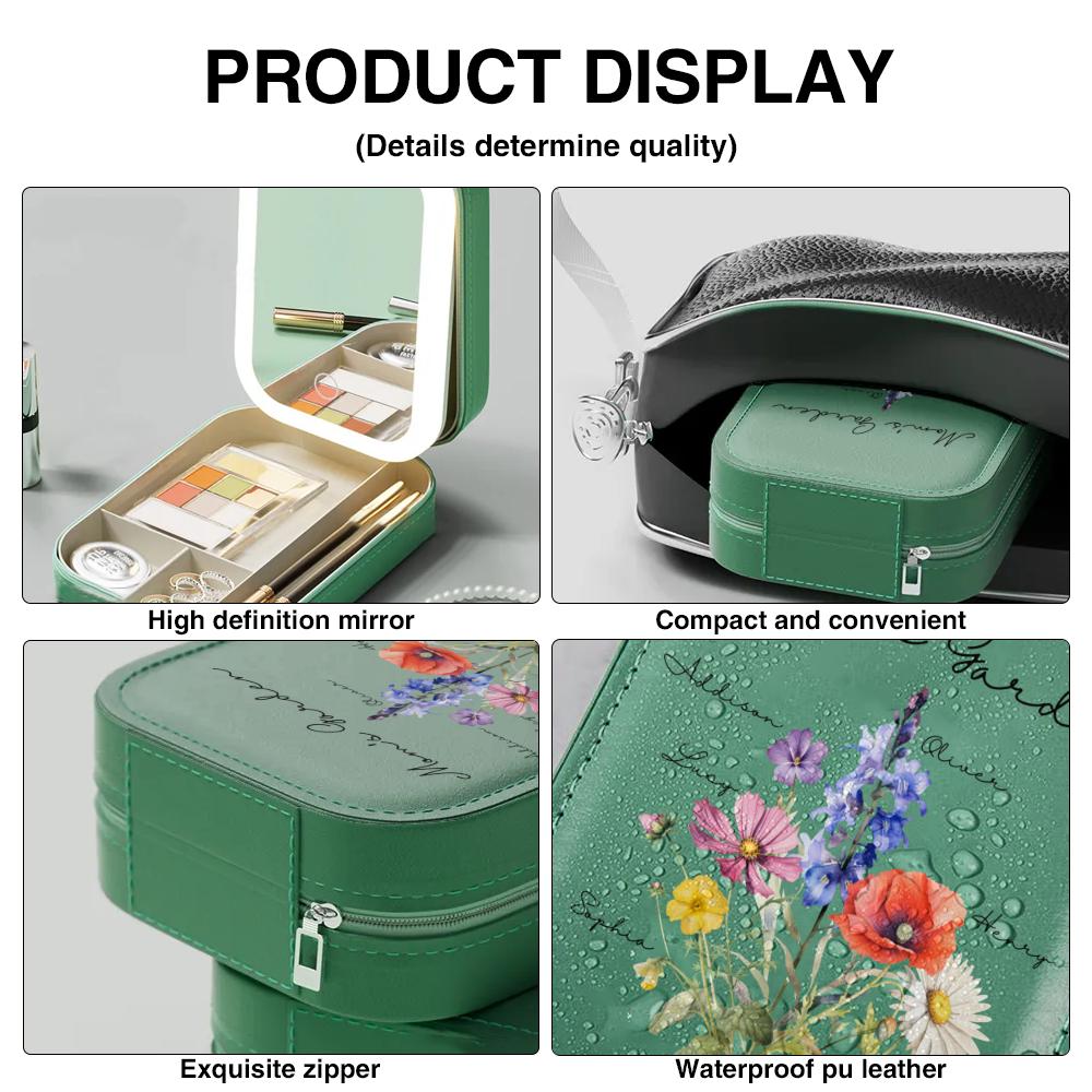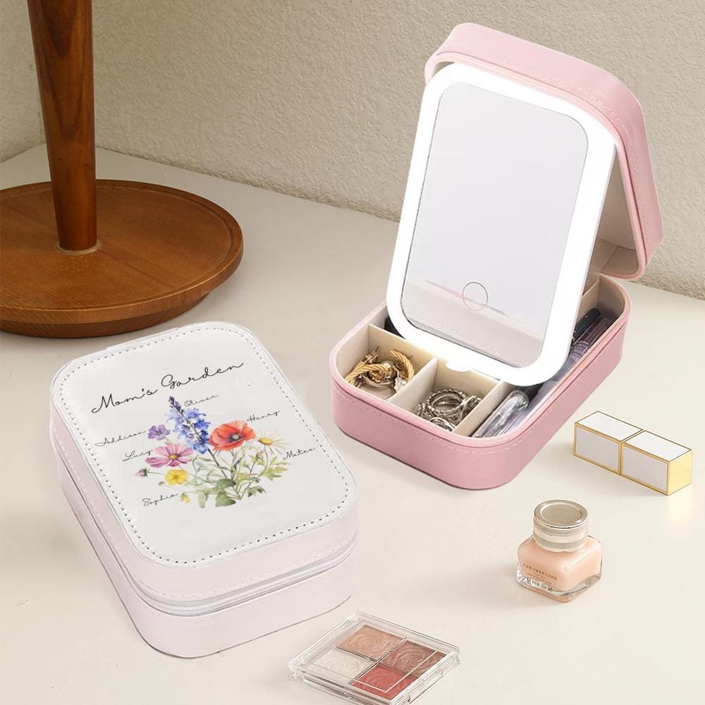 This personalized floral organizer combines style and practicality, featuring your custom birthday bouquet design, adjustable LED lighting, and compartments for jewelry, cosmetics, or travel essentials.