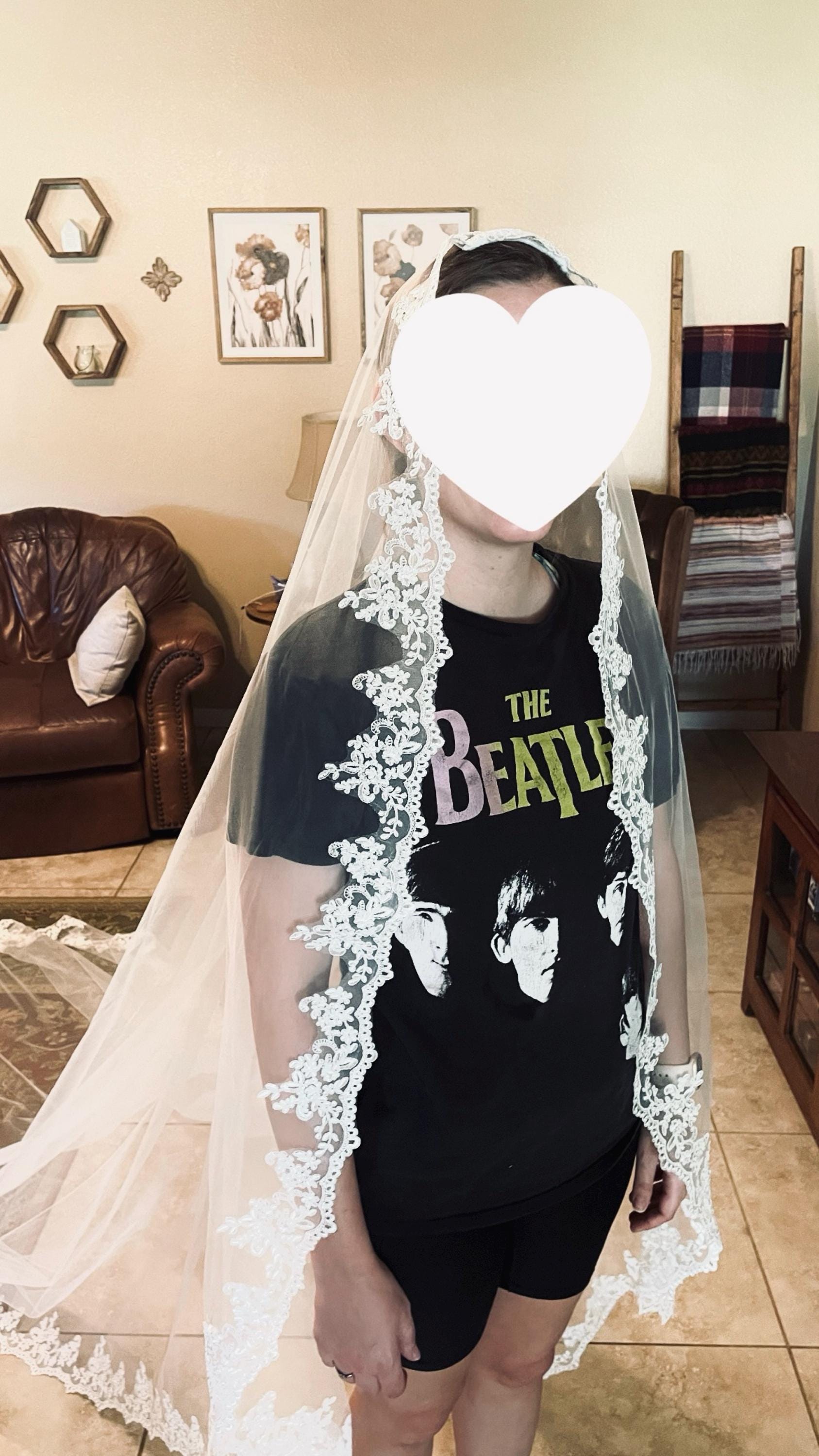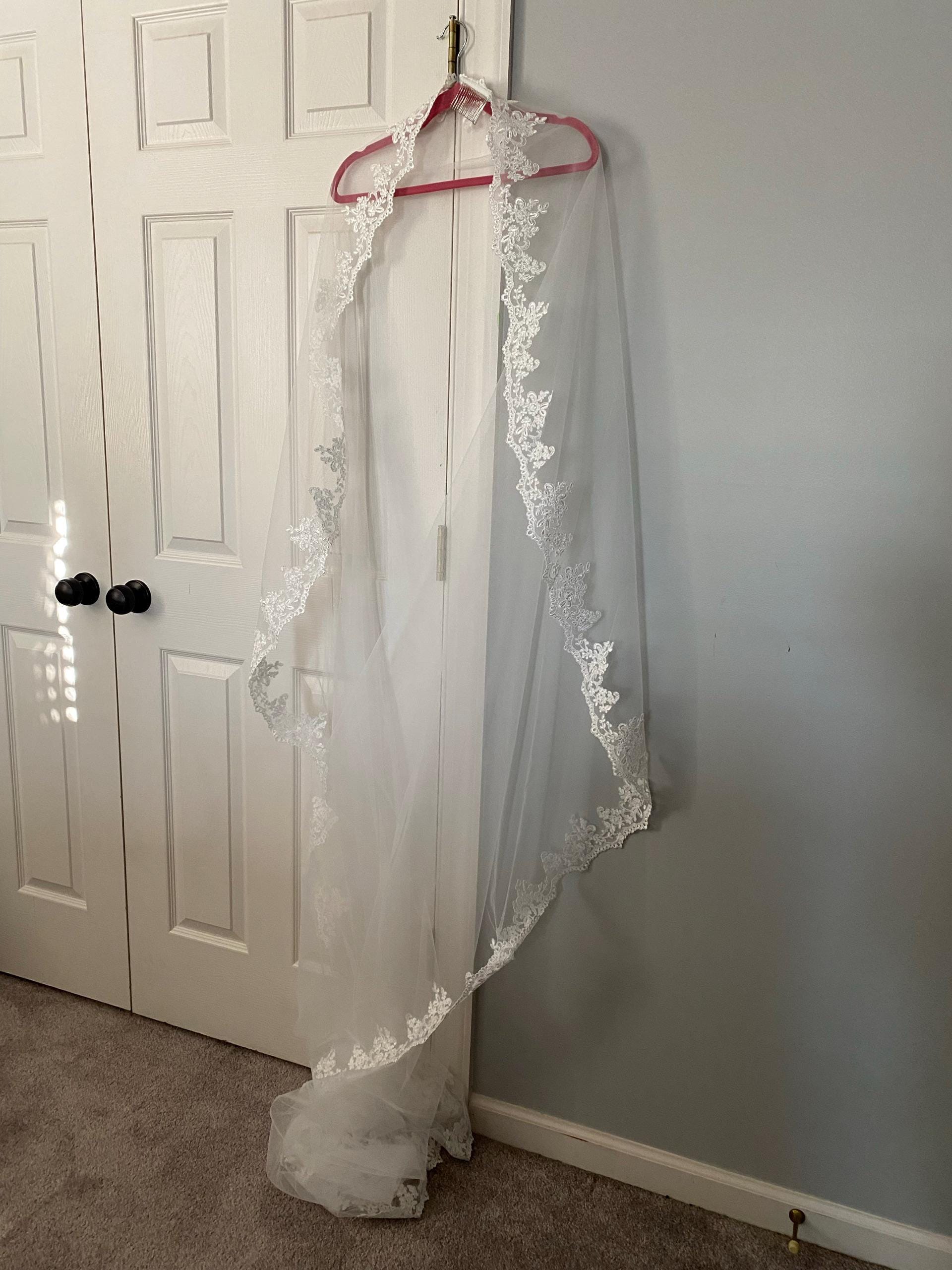 The veil on the listing photo is 1 layer, pure white/off-white, 40 inches.