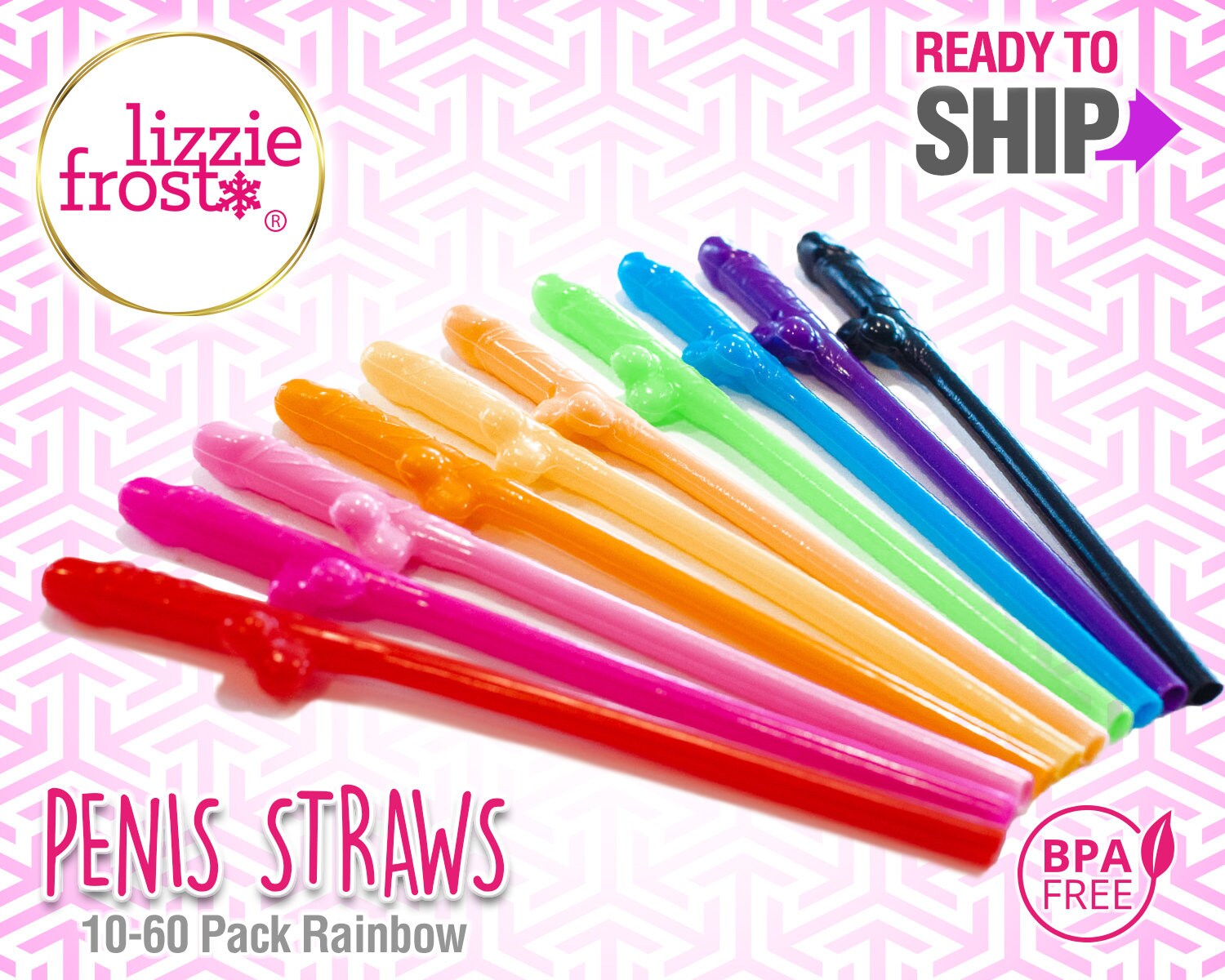 ✨PACK INCLUDES 10 to 60 : Black, Purple, Blue, Green, Yellow, Flesh, Orange, Light Pink, Hott Pink, and Red Rainbow Penis Straws