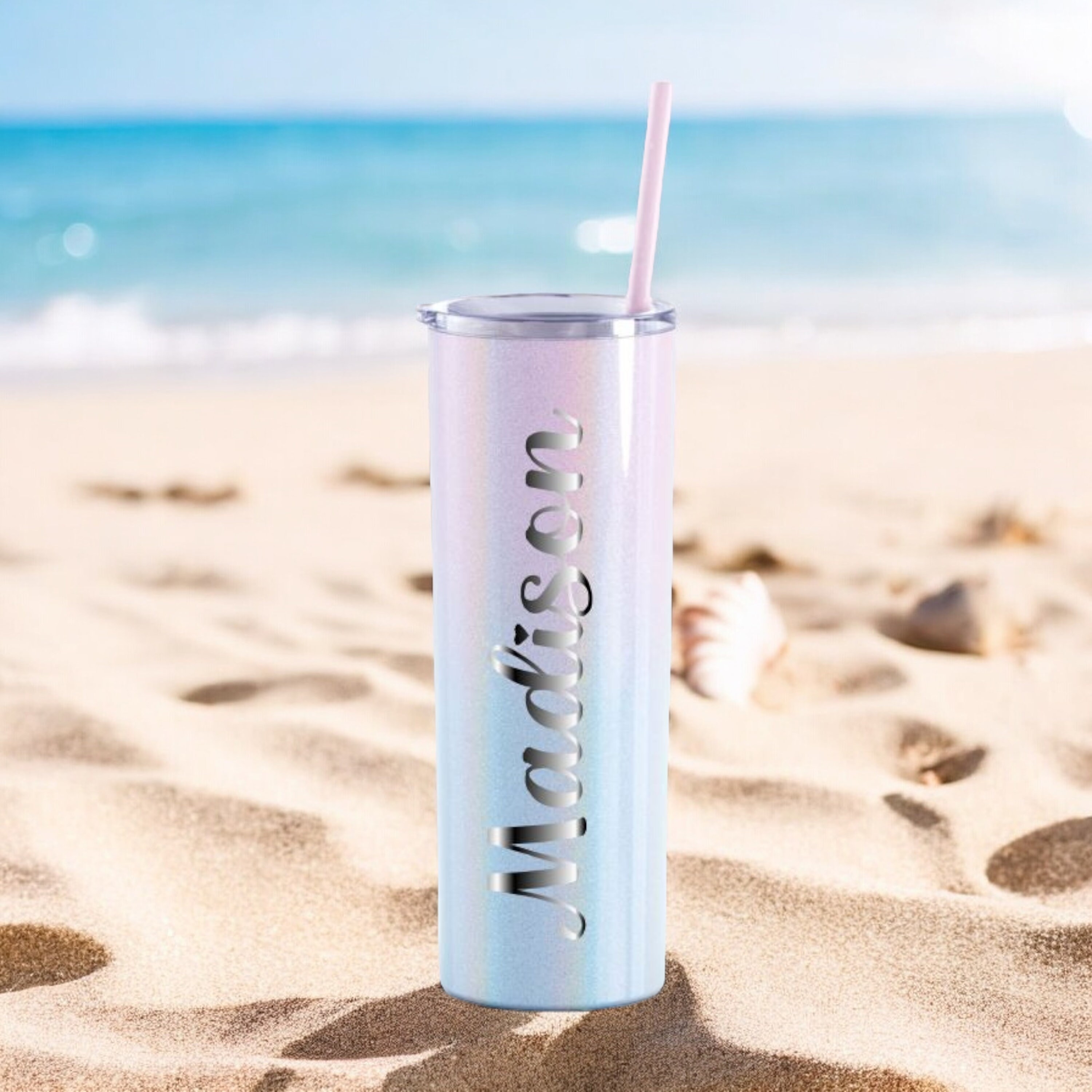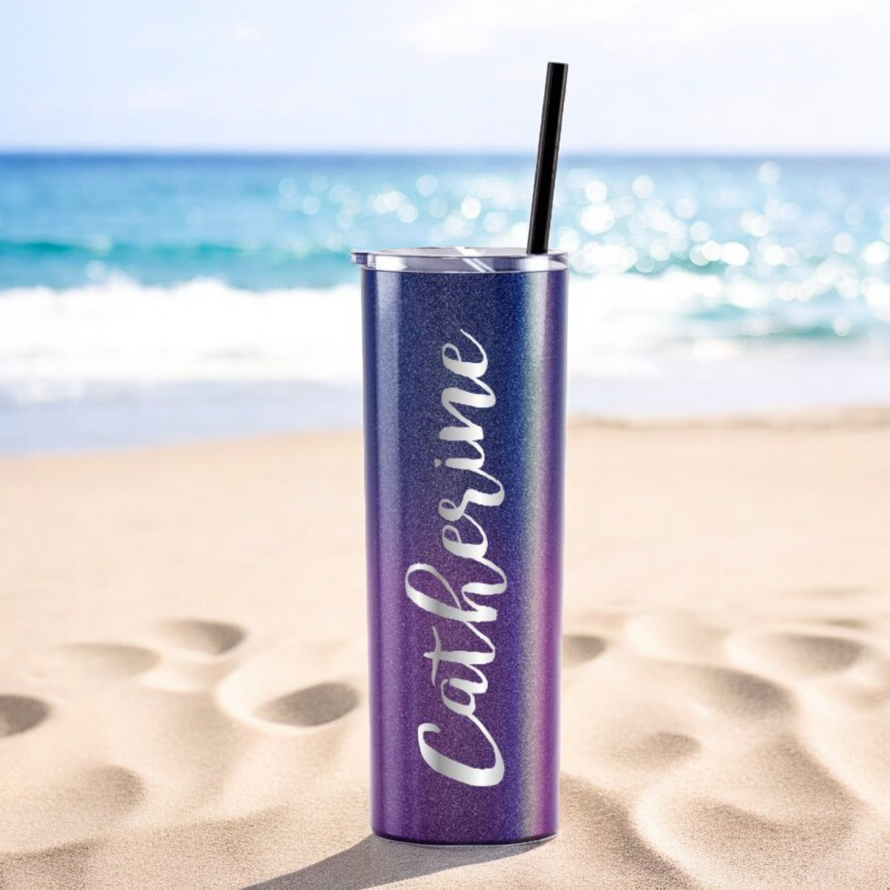 Our Maars Skinny Tumbler, the base for these personalized gems, is a 20oz thermal bottle crafted from premium 18/8 stainless steel. Its double-wall construction and powder-coated finish ensure it resists chips and scratches, promising long-lasting durability. With copper vacuum insulation, this tumbler keeps drinks cold for up to 24 hours and hot for up to 12 hours, making it ideal for any beverage, whether you're sipping a cold drink by the pool or enjoying a hot coffee on the go.