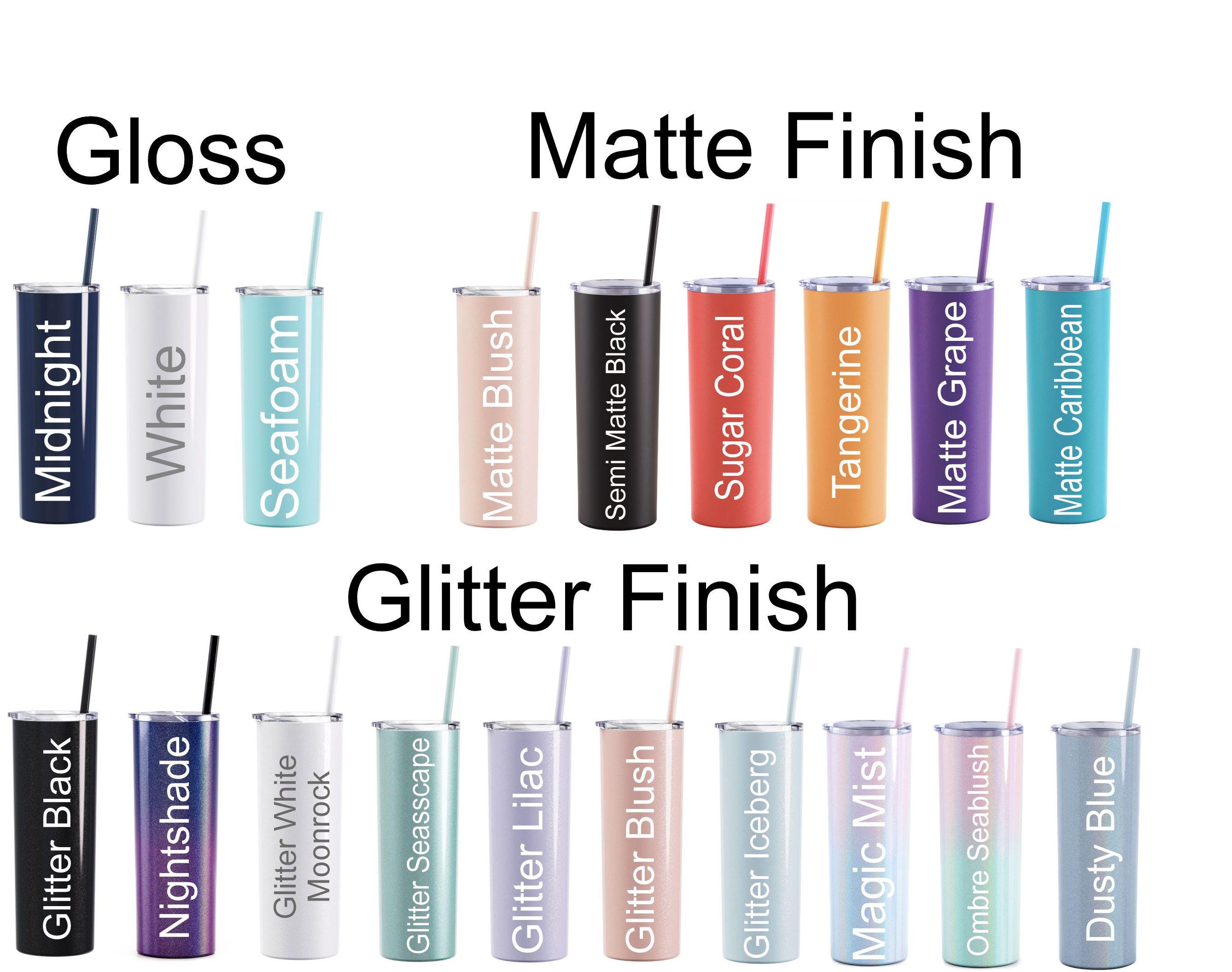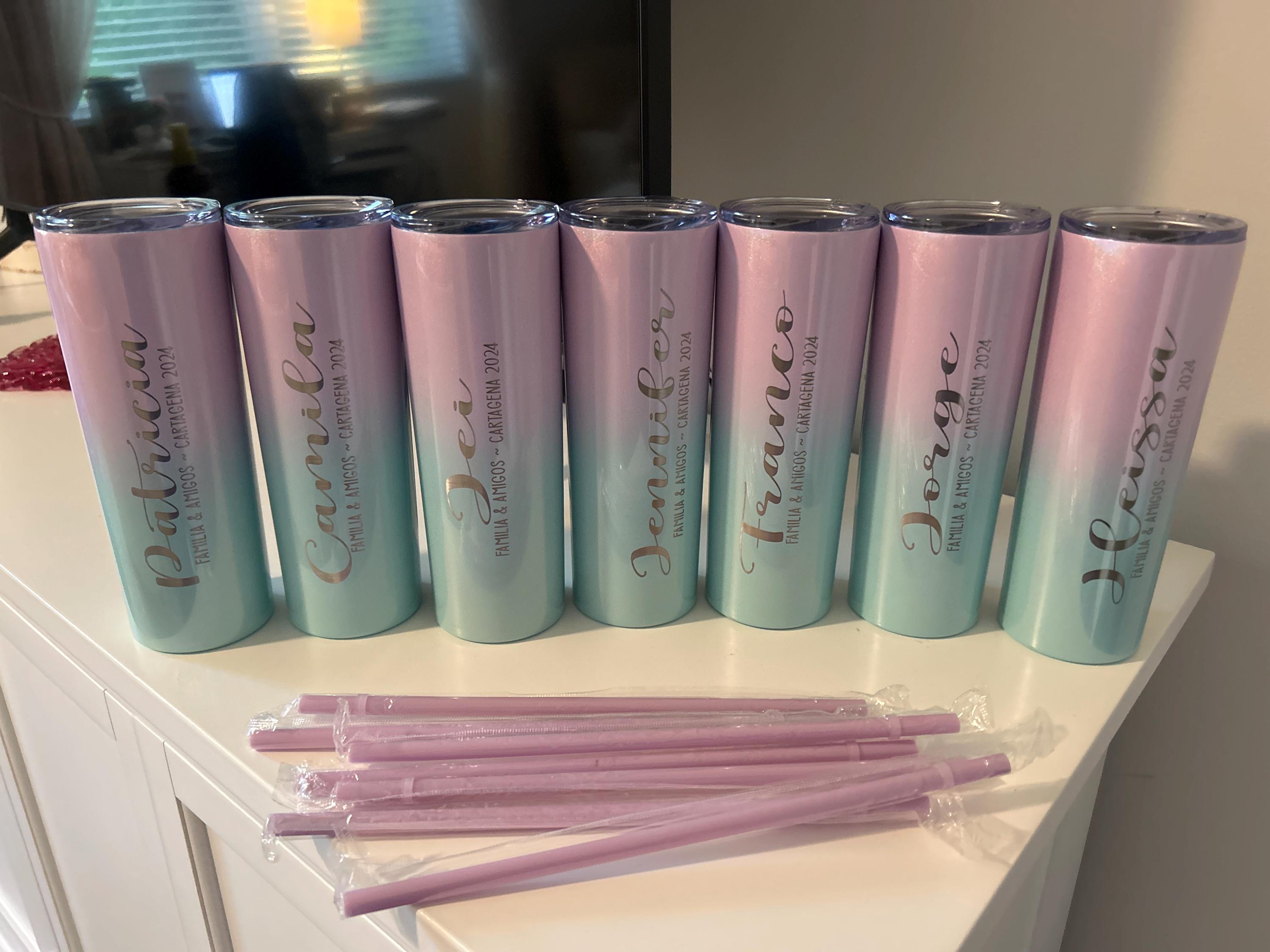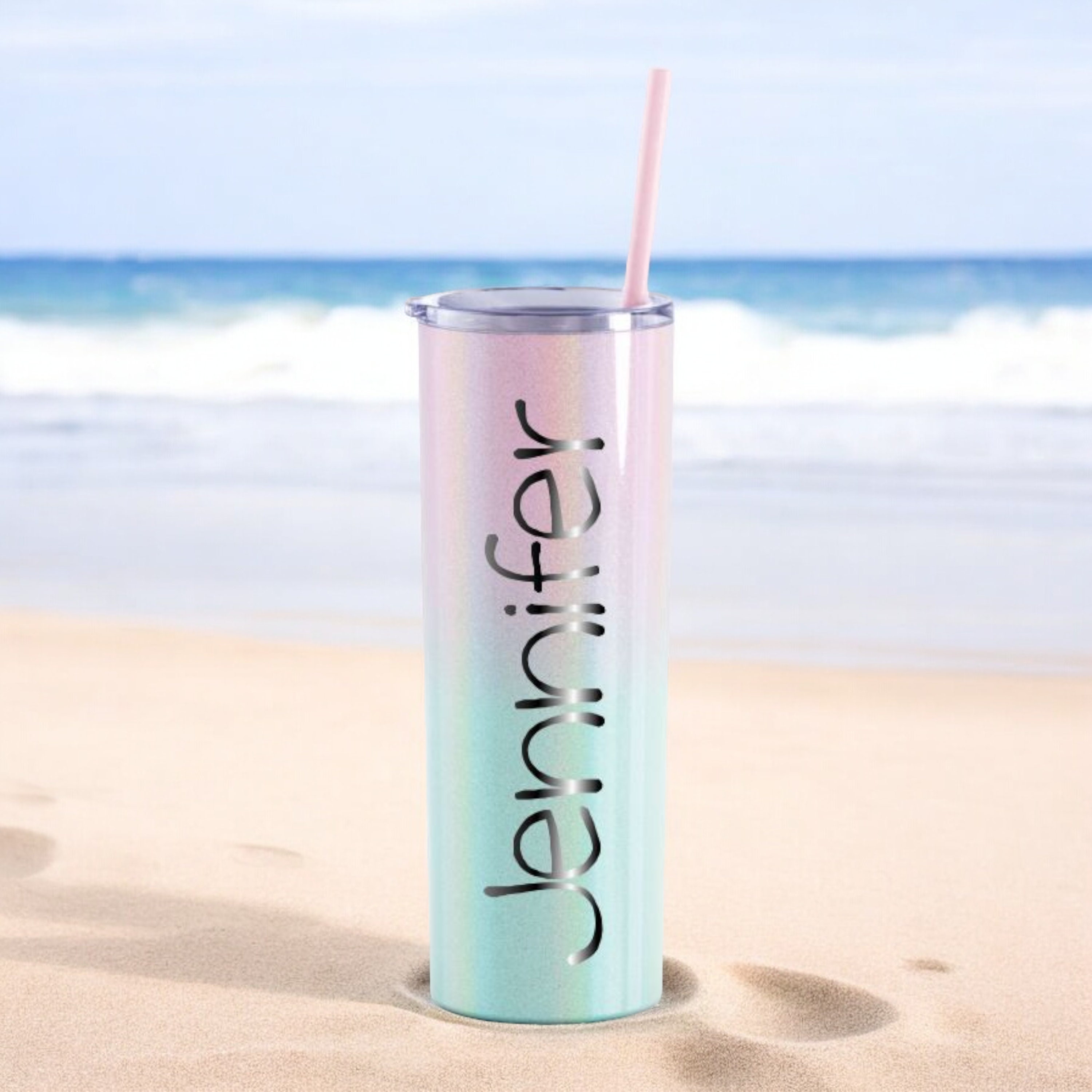 Make your bridesmaids, girls' trip, or friends' birthday extra special with our personalized stainless steel skinny tumblers! Available in multiple colors, you can choose the perfect shade to match your theme or the recipient's favorite color. Add a personal touch with a name and font of your choice, making each tumbler a unique and cherished gift. For additional engraving on the back side, feel free to contact us directly for more details.