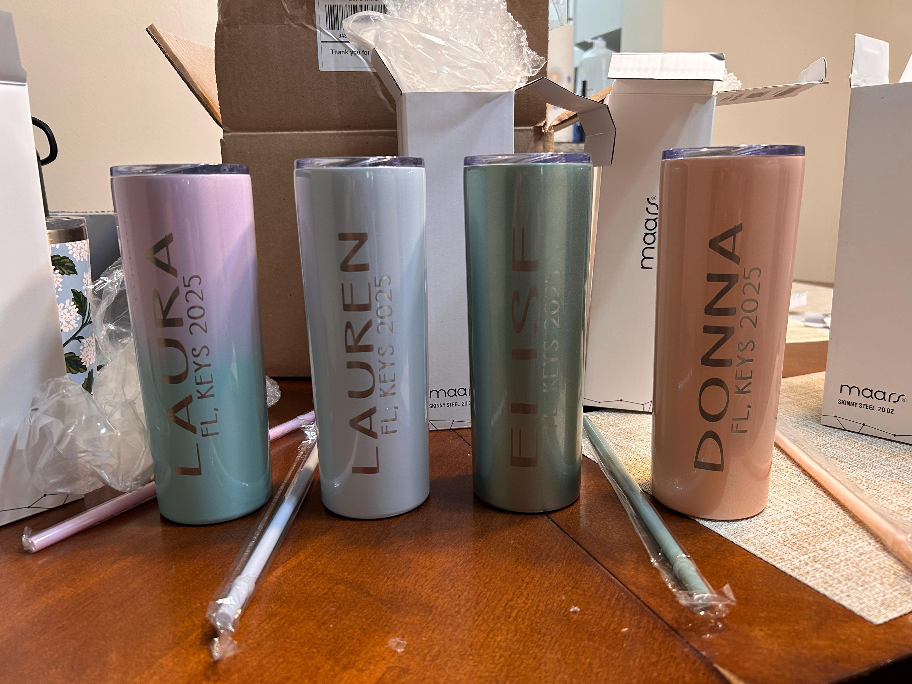 Stylish, practical, and heartfelt, these personalized stainless steel tumblers are the perfect gift for any occasion. Celebrate your special moments with a gift that combines thoughtfulness and functionality, perfect for bridesmaids, girls' trips, and friends' birthdays.