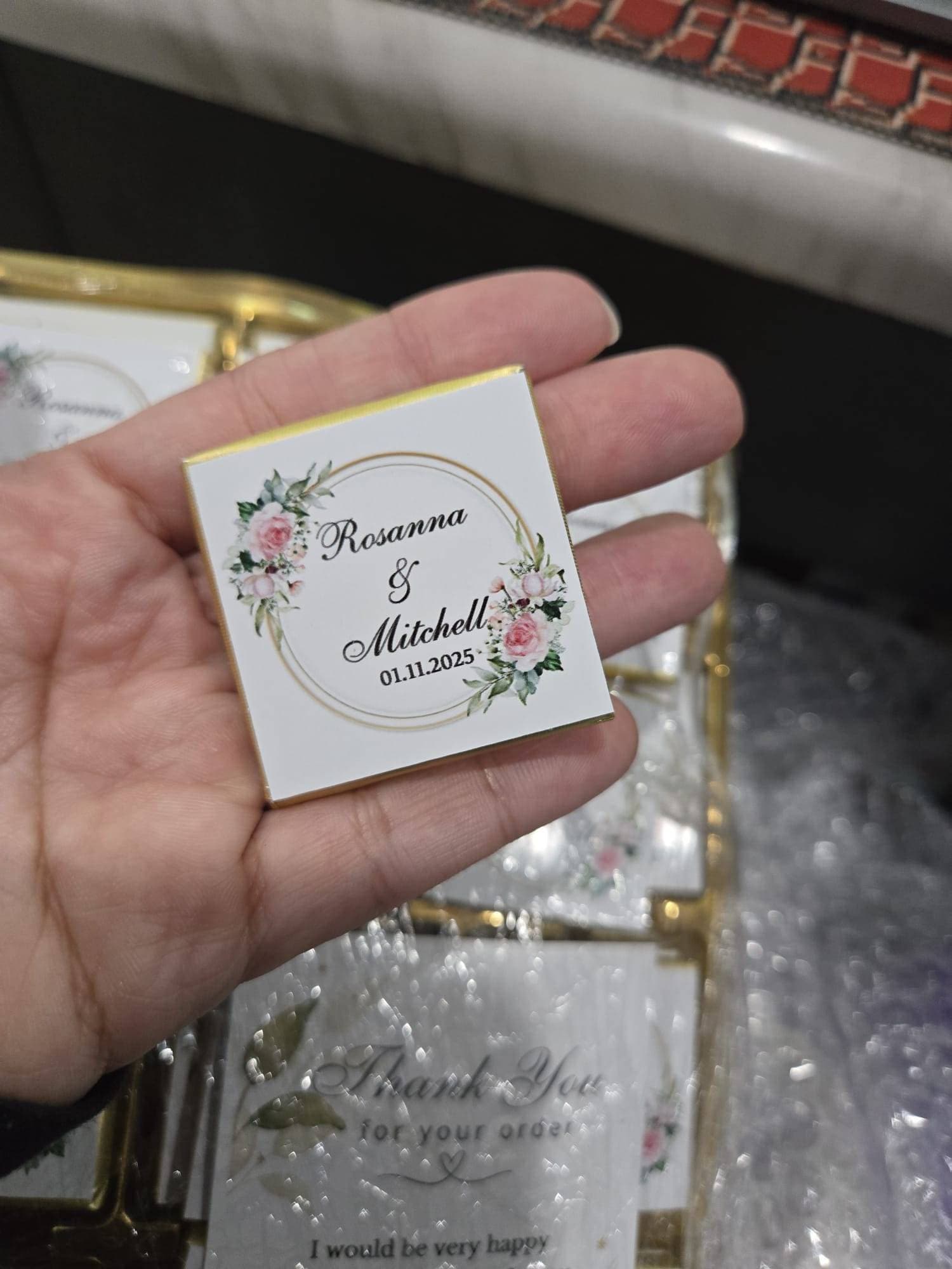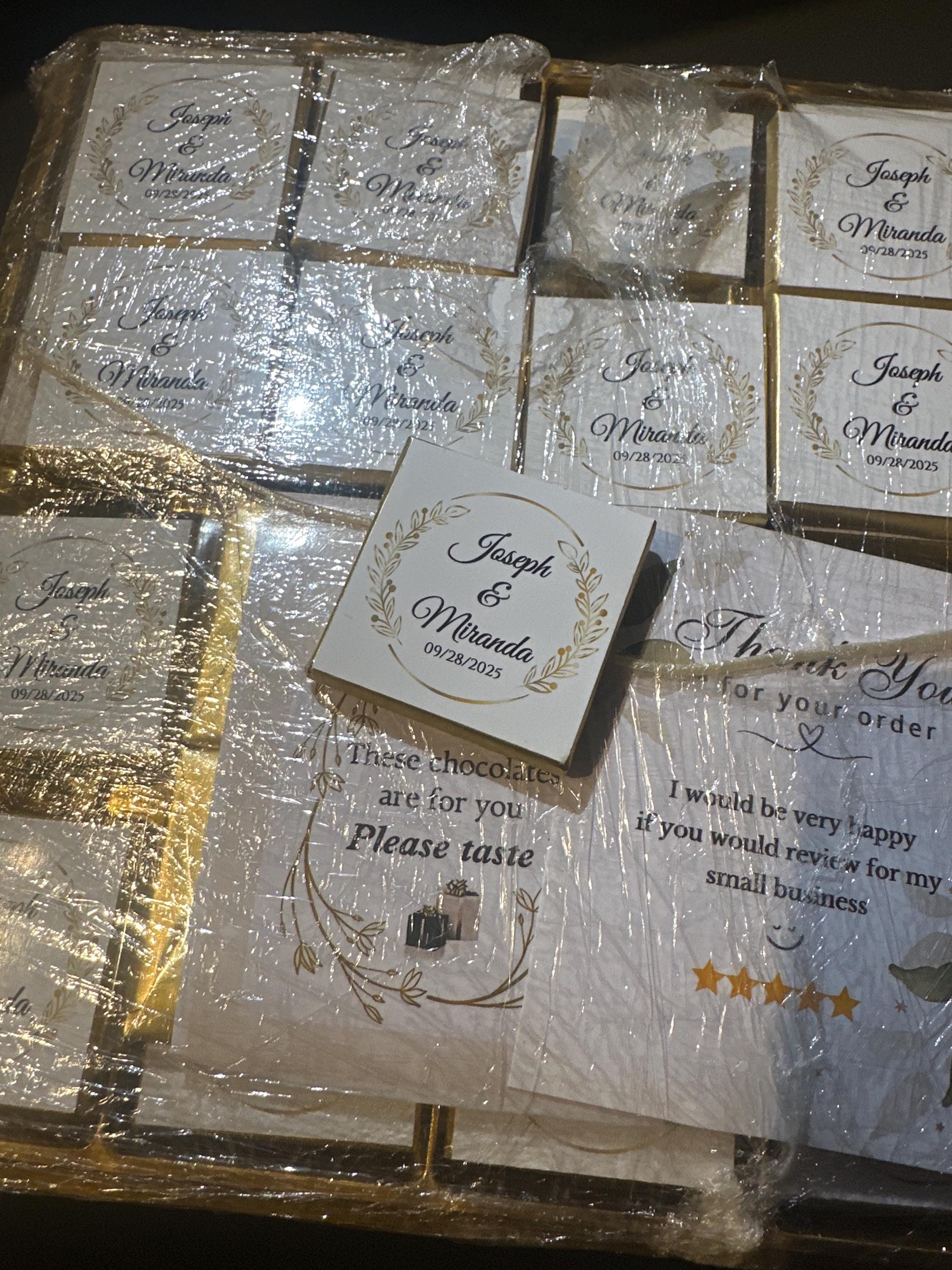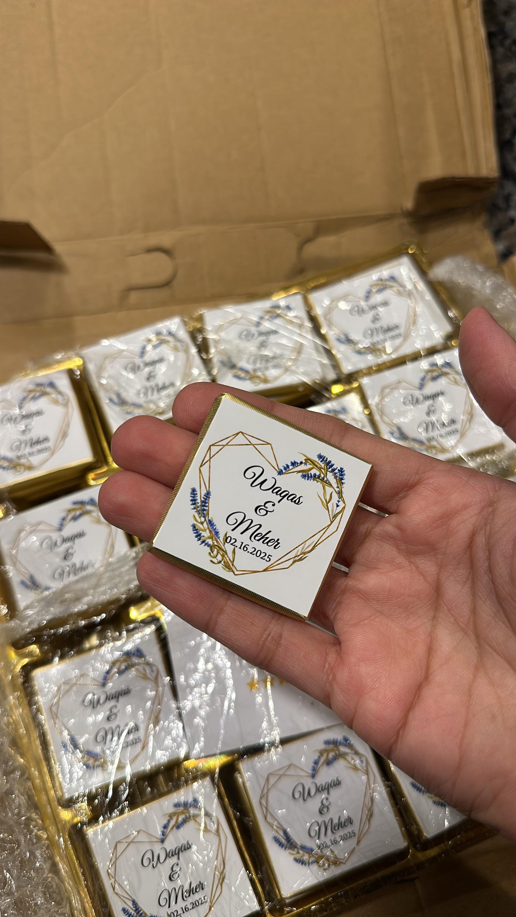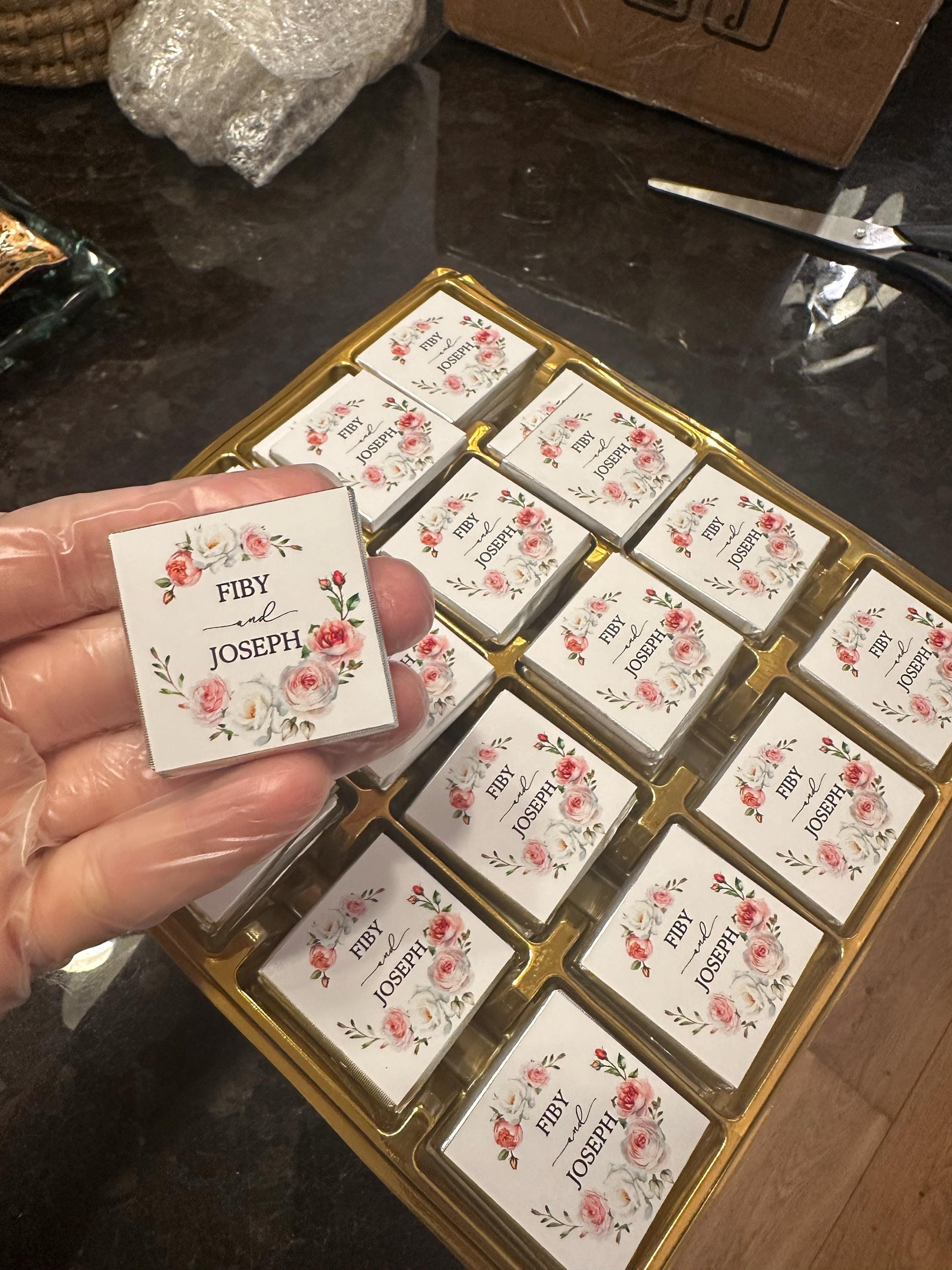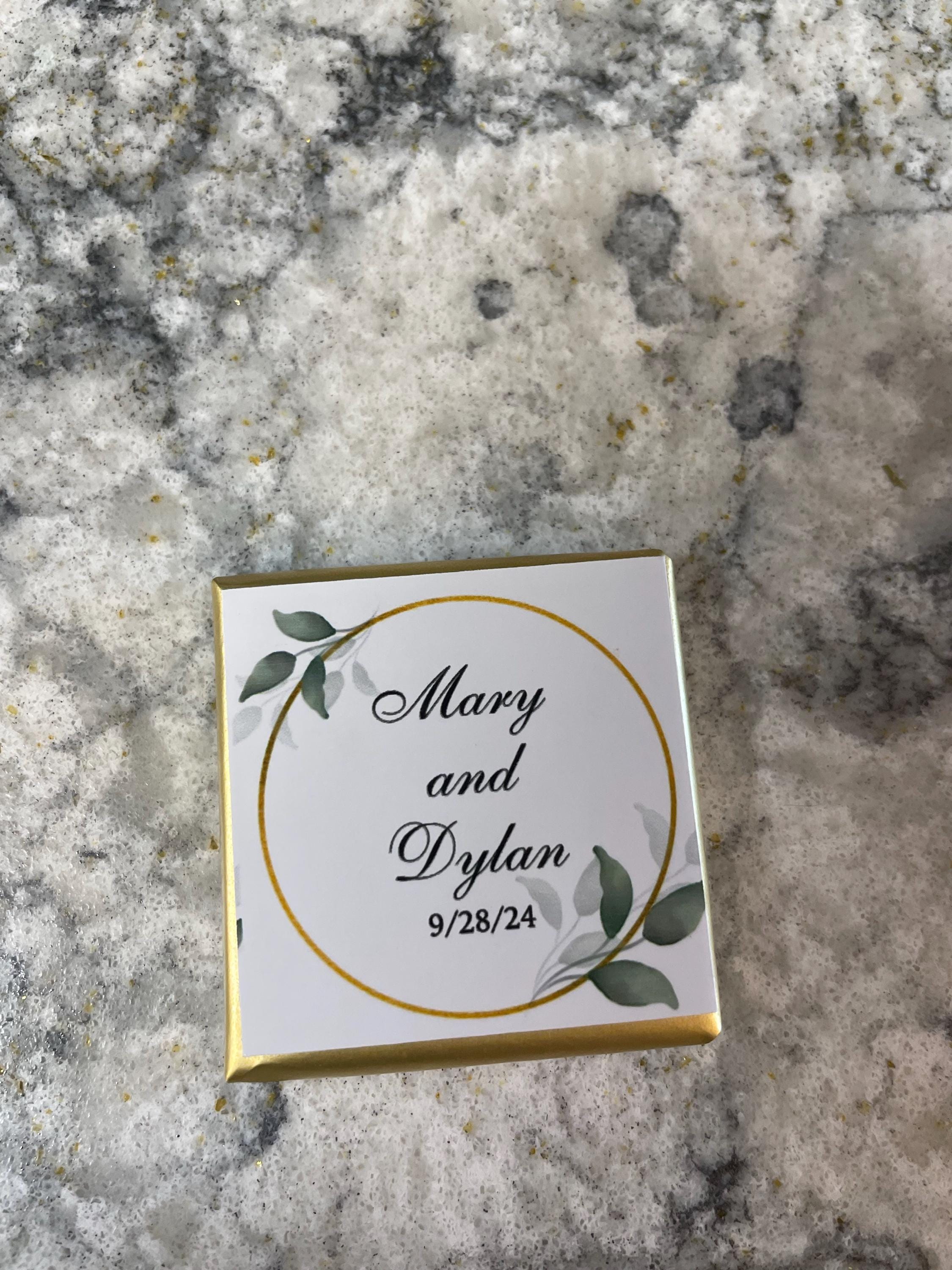 50 Personalized Wedding Chocolate Label Stickers for Guests, Mini Chocolate Label Stickers, Gold or Silver Foil Stickers, Wedding Table Decorations