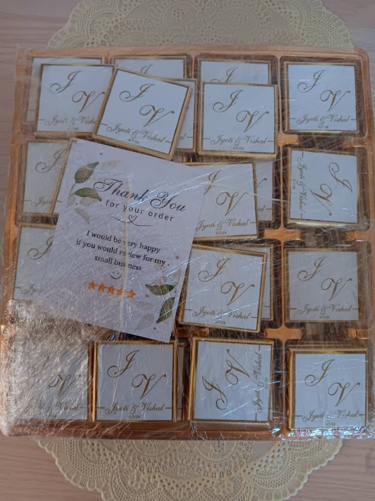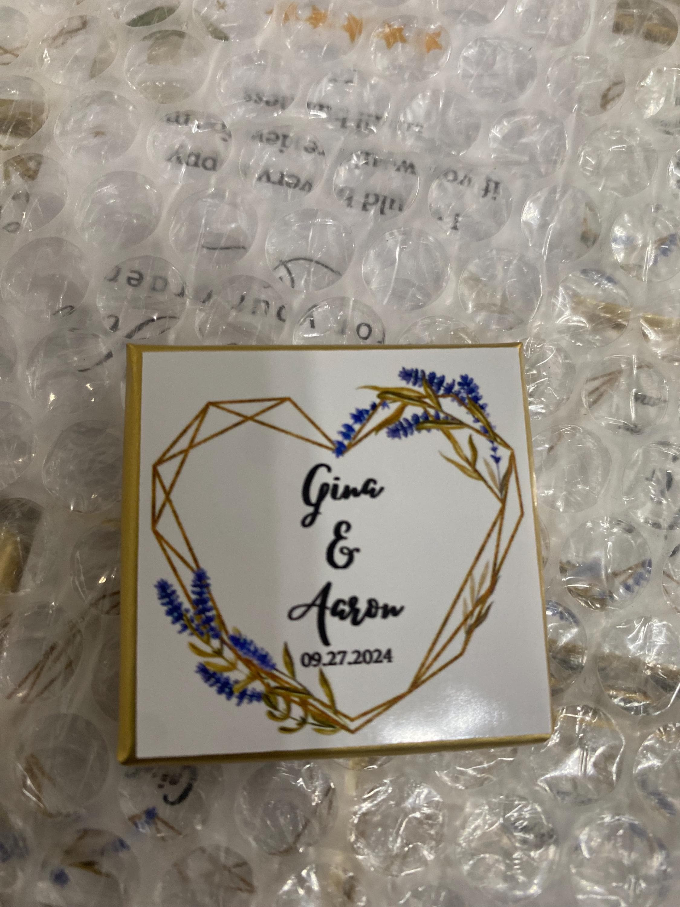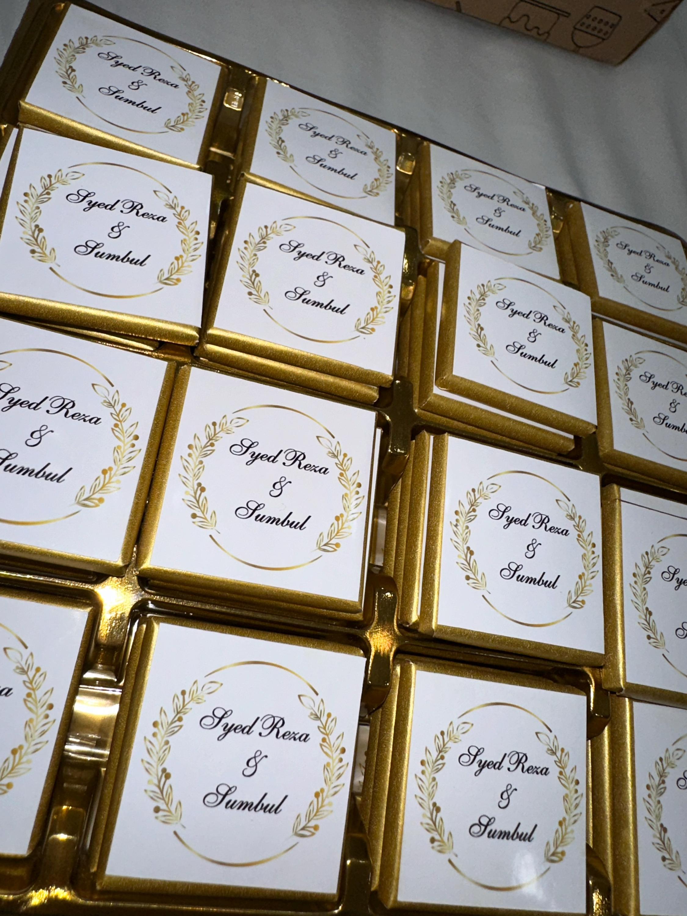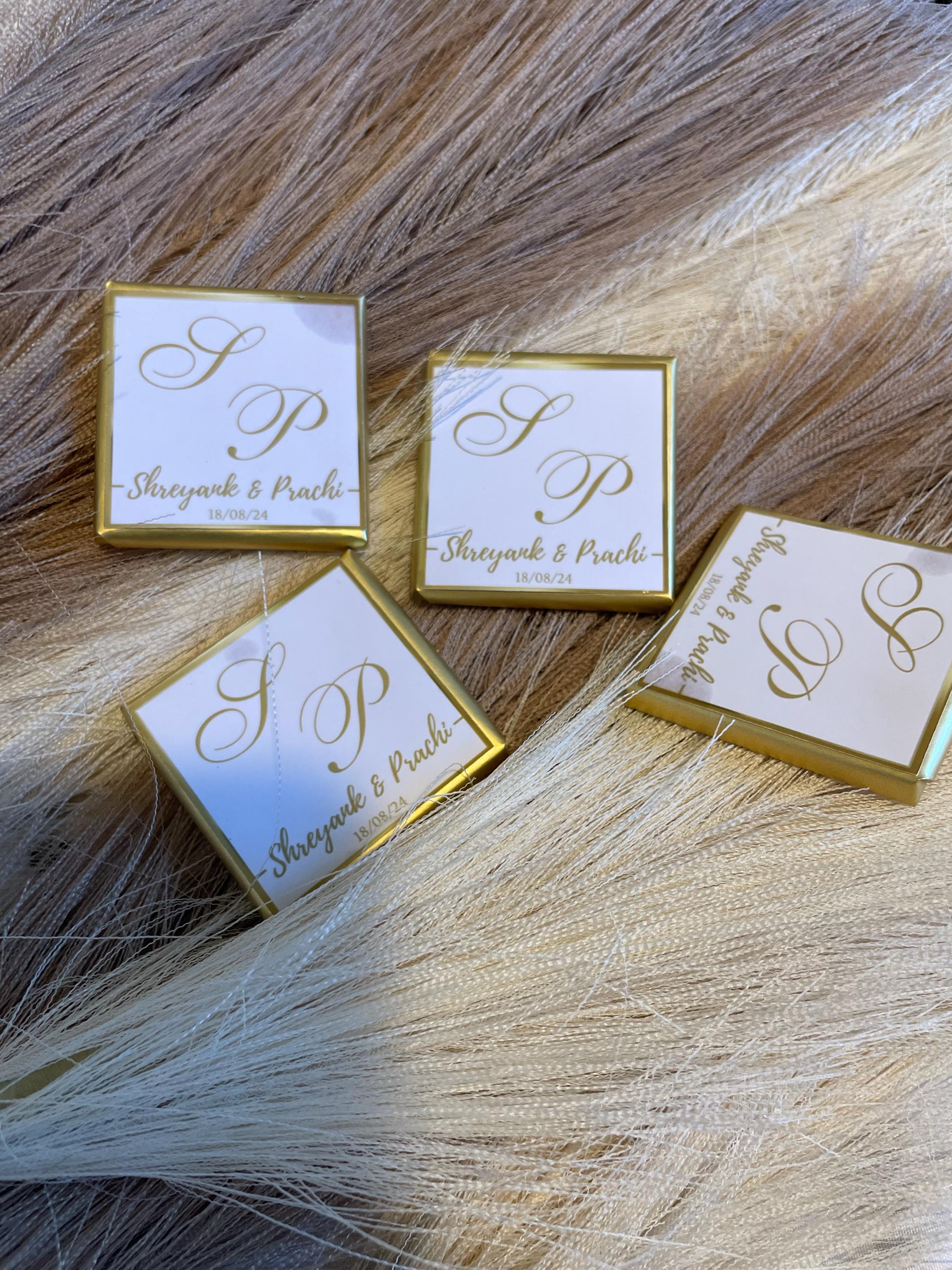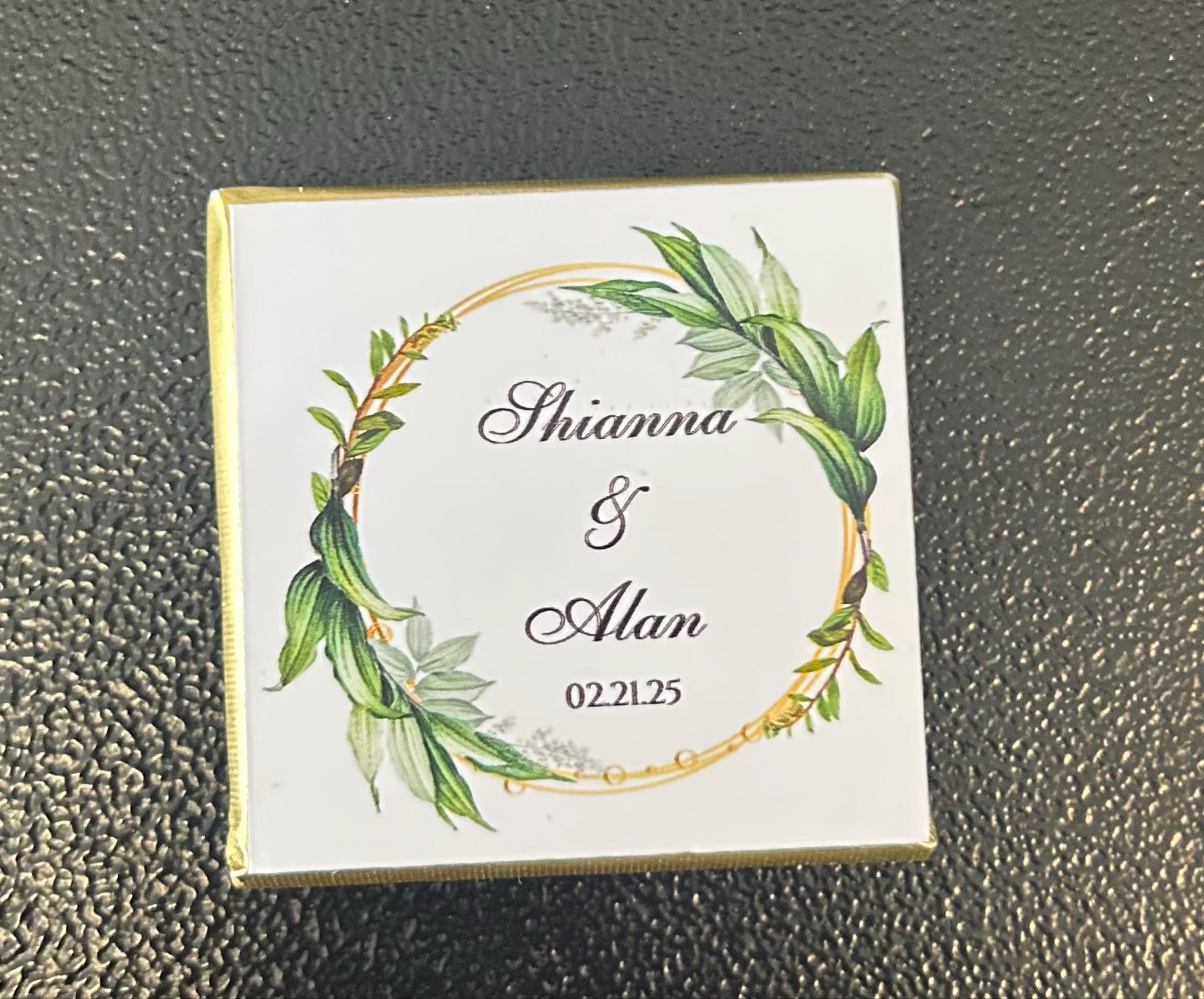 50 Personalized Wedding Chocolate Label Stickers for Guests, Mini Chocolate Label Stickers, Gold or Silver Foil Stickers, Wedding Table Decorations