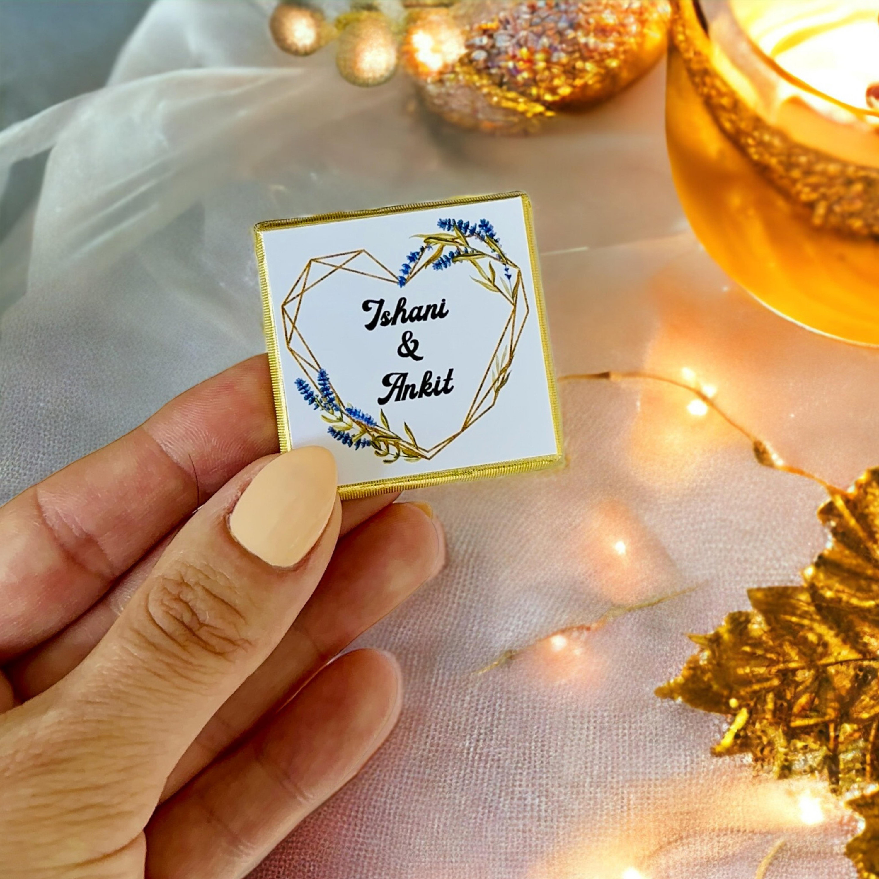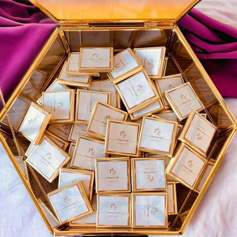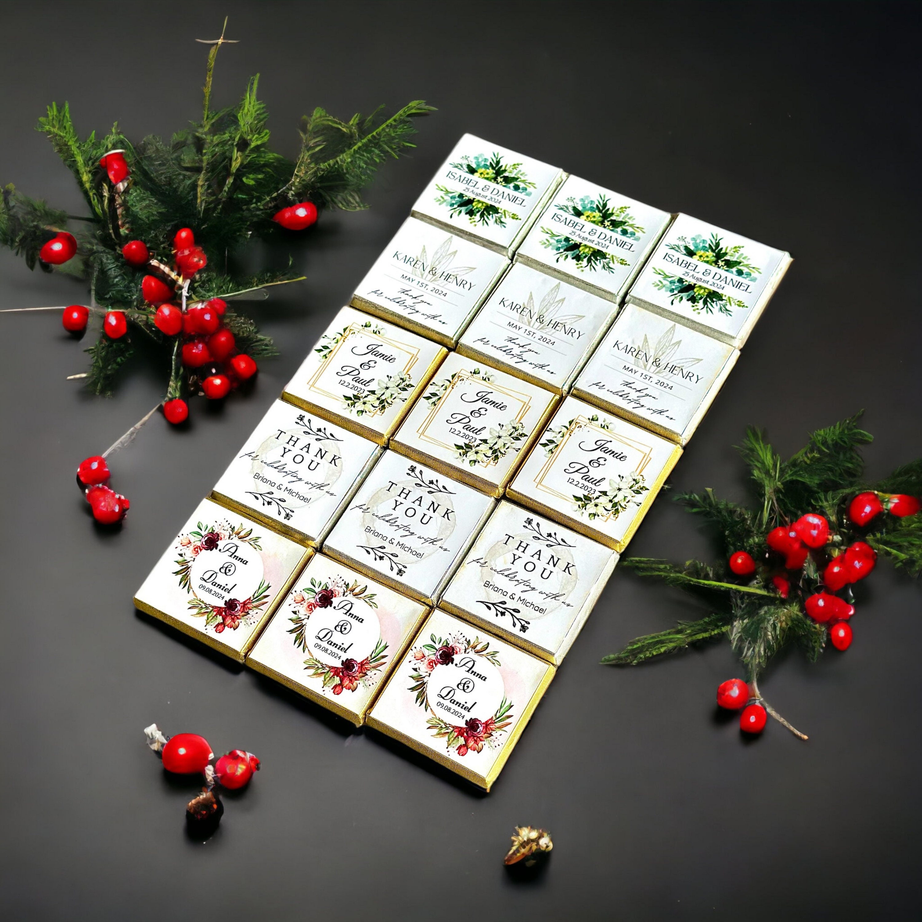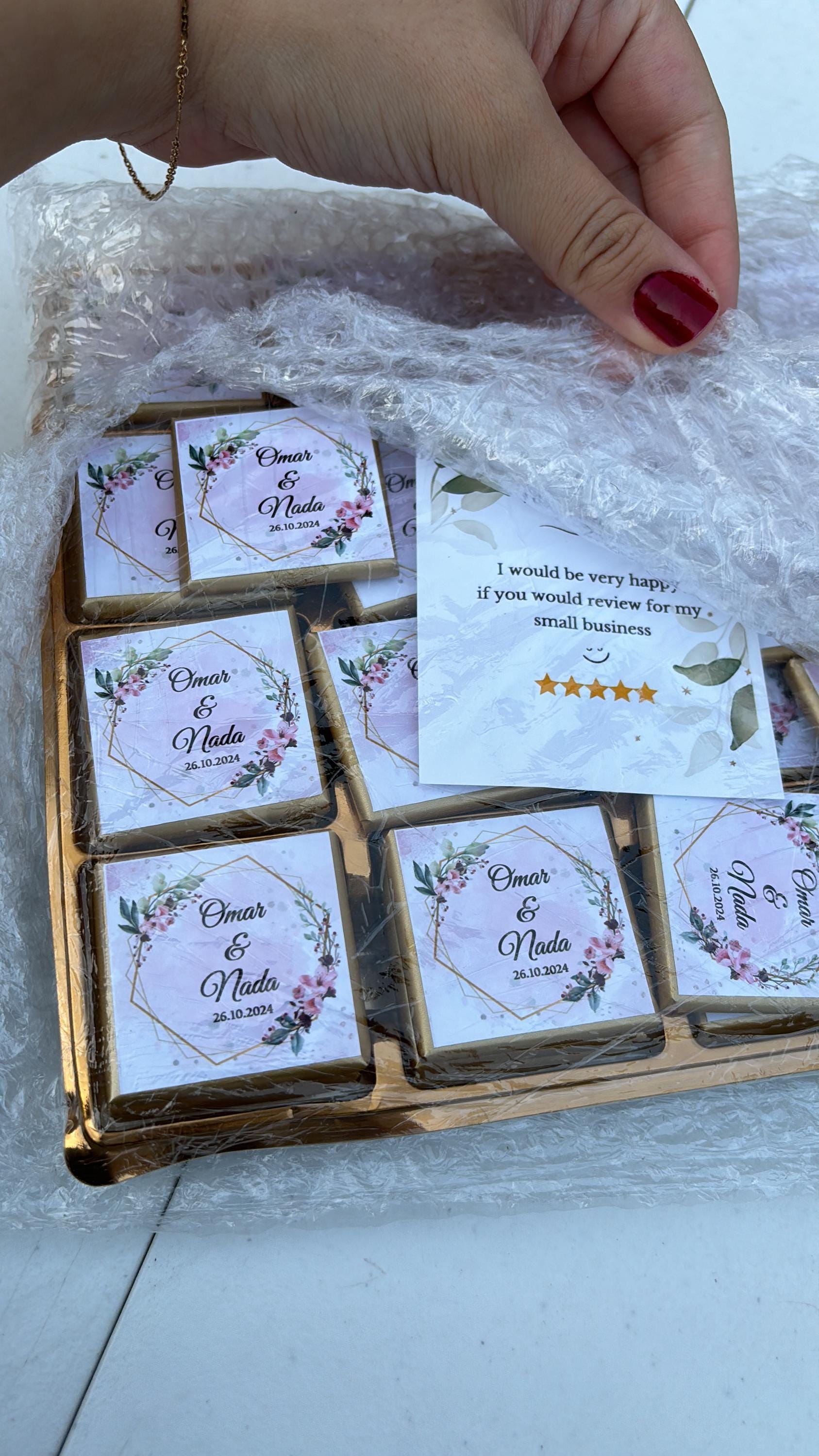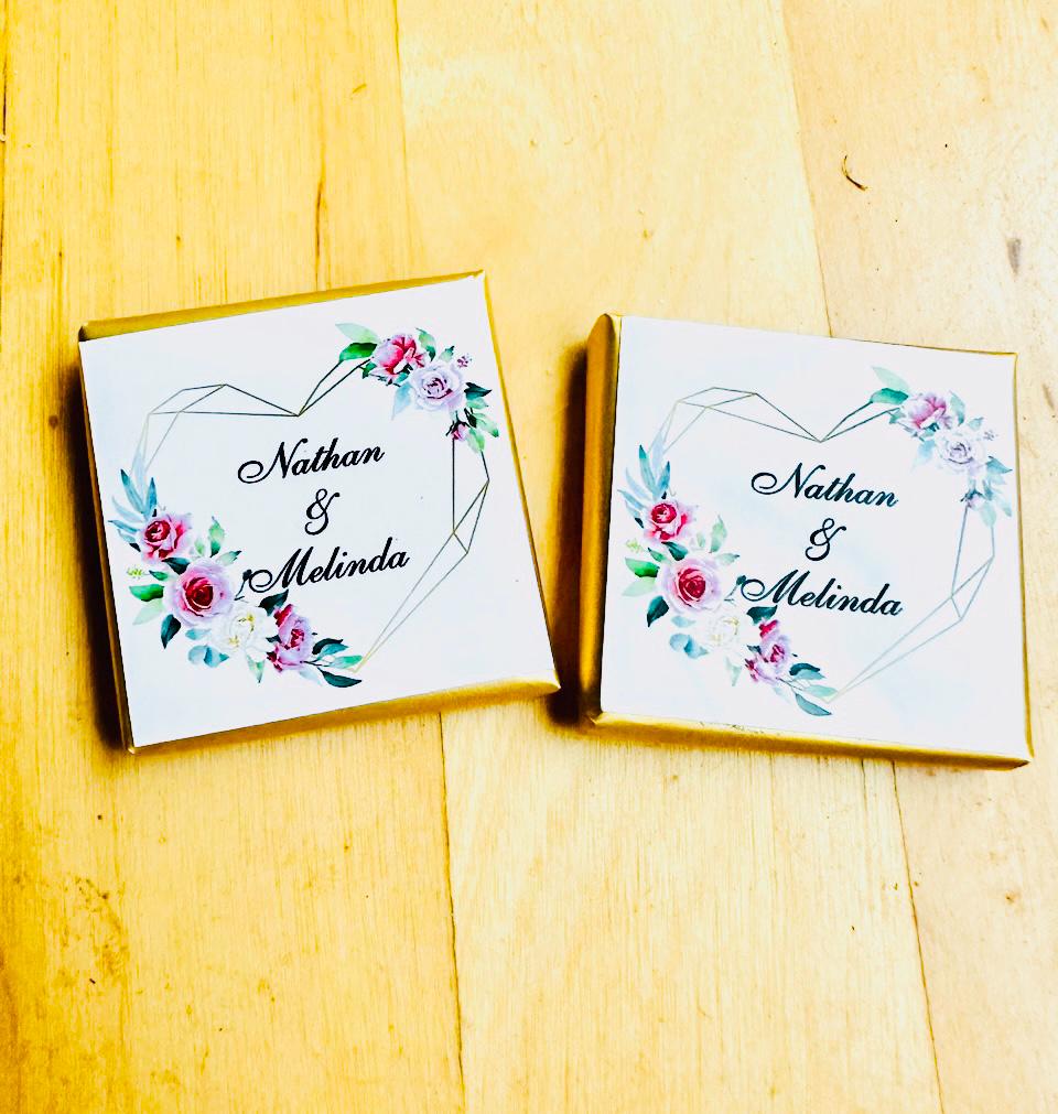 50 Personalized Wedding Chocolate Label Stickers for Guests, Mini Chocolate Label Stickers, Gold or Silver Foil Stickers, Wedding Table Decorations
