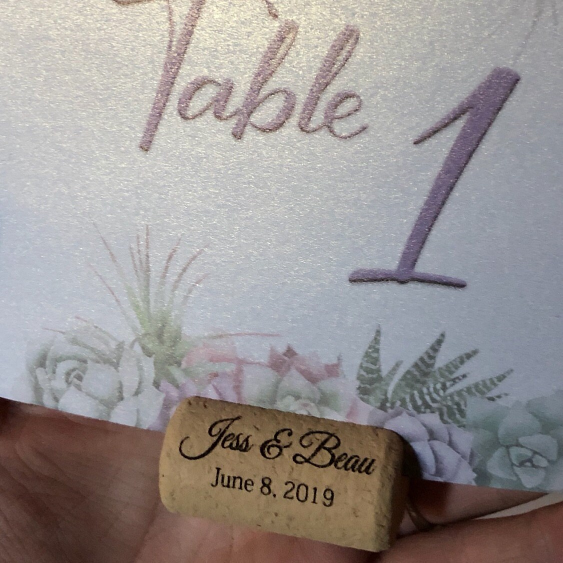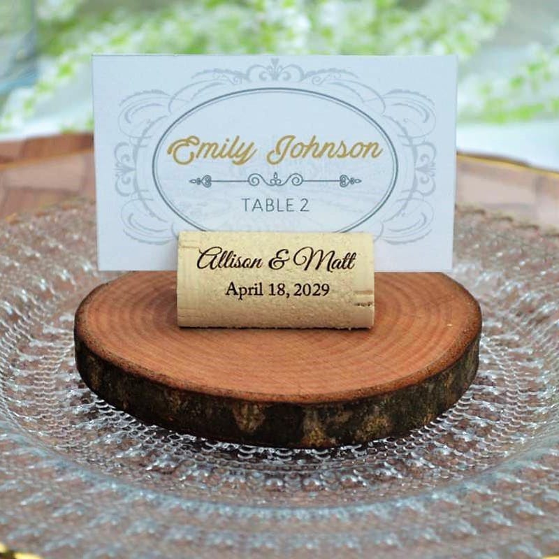 Our personalized cork place card holders are the perfect addition to elevate the style and organization of your special event. Made from high-quality cork, these unique and charming place card holders add a natural and rustic feel to any table setting. Our cork place card holders are versatile and suitable for a variety of occasions, including weddings, dinner parties, corporate events, and more. They blend seamlessly with different themes and decor, from rustic and bohemian to elegant and modern, adding a touch of warmth and sophistication to the overall ambience.