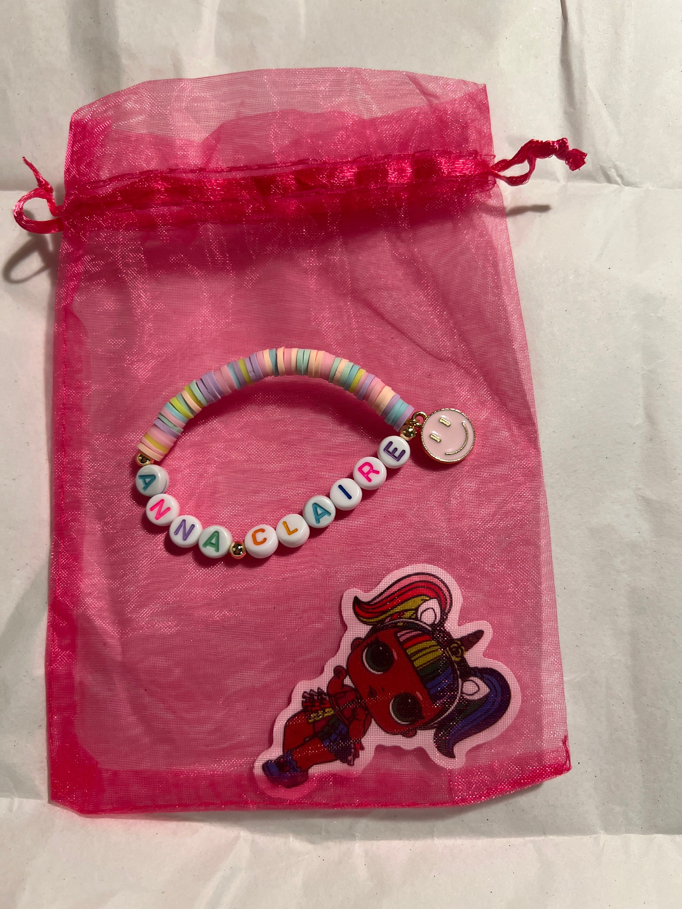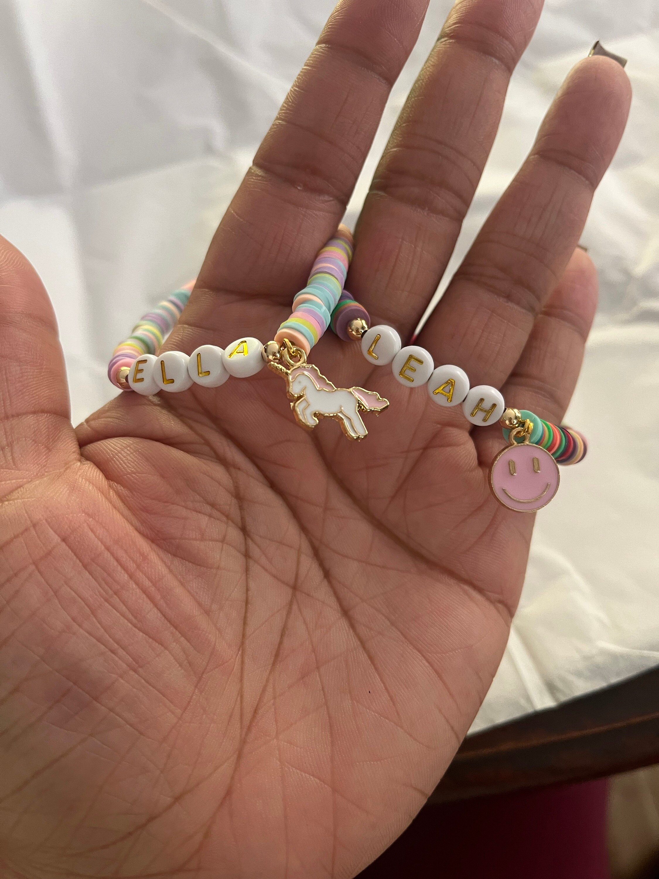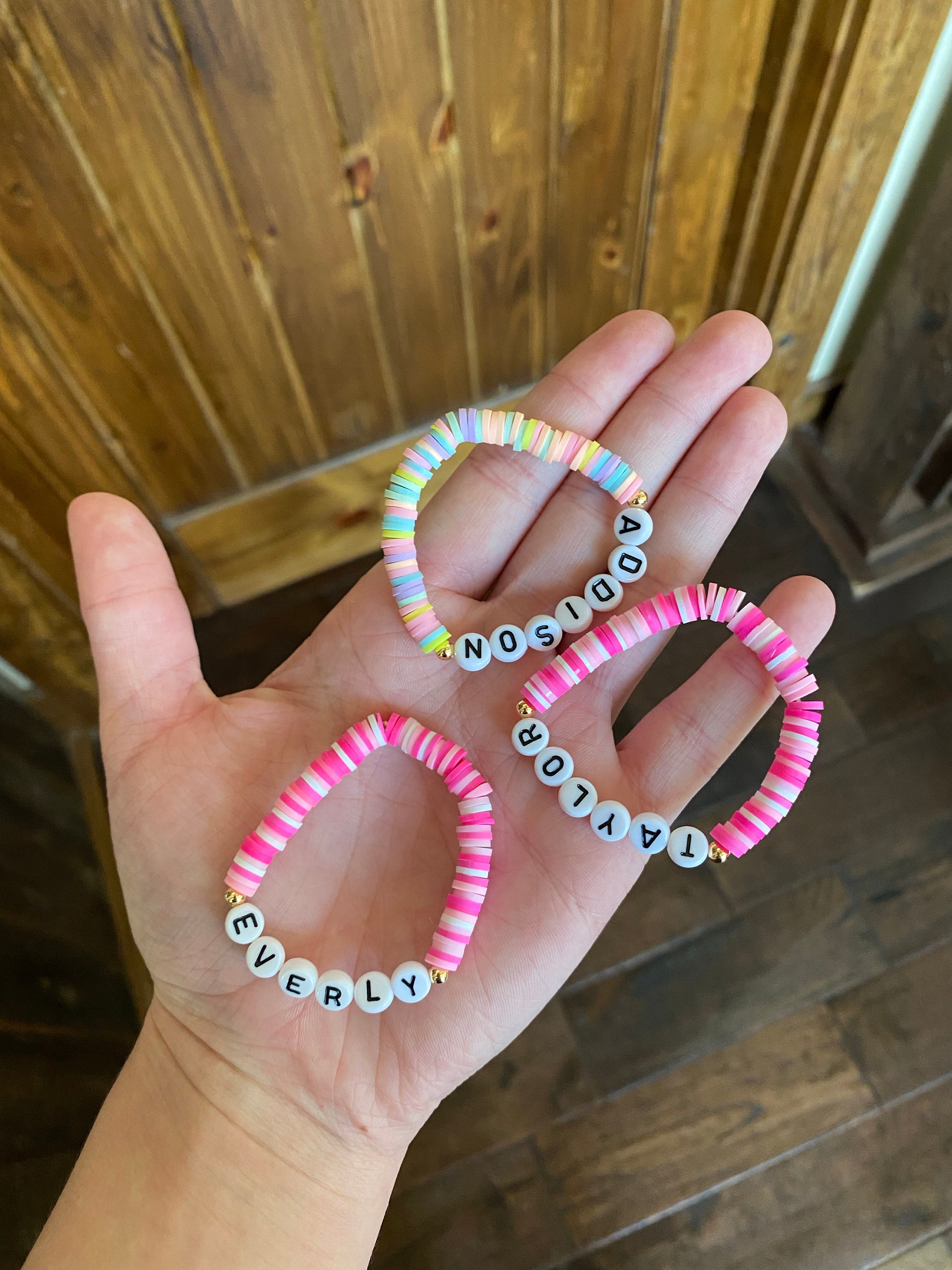These fun kid and adult personalized bracelets are stylish and chic for young girls. Perfect for stocking stuffers, Valentine’s Day, Easter, Mother’s Day, Christmas, birthday gifts, friendship bracelets, the list can go on.
