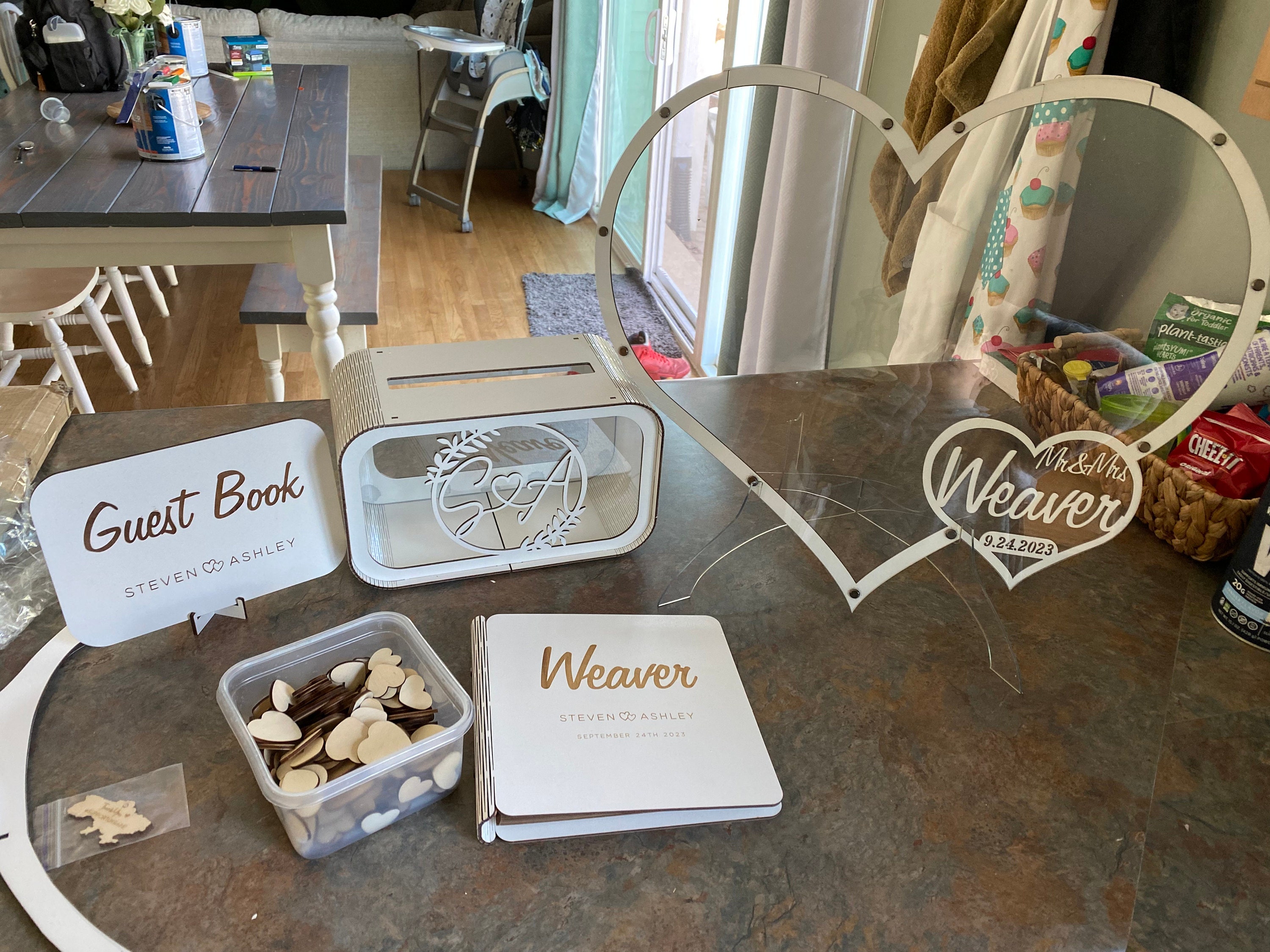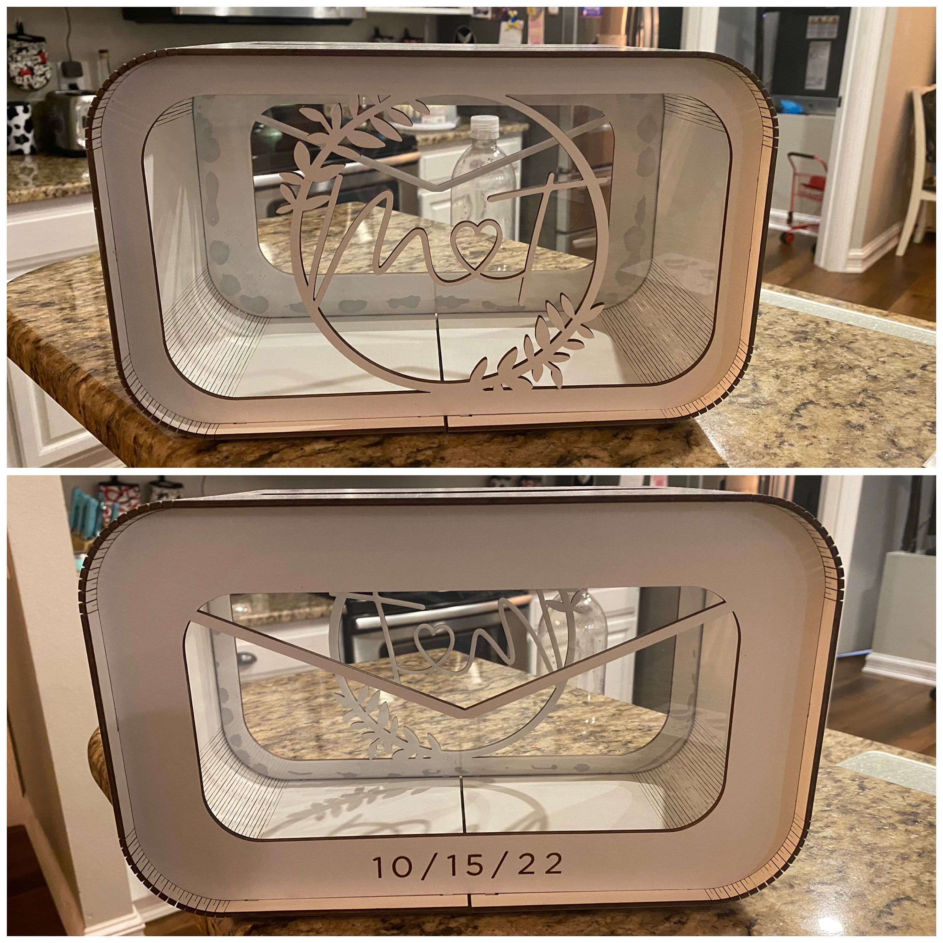 • Laser engraved with your last name and wedding date.