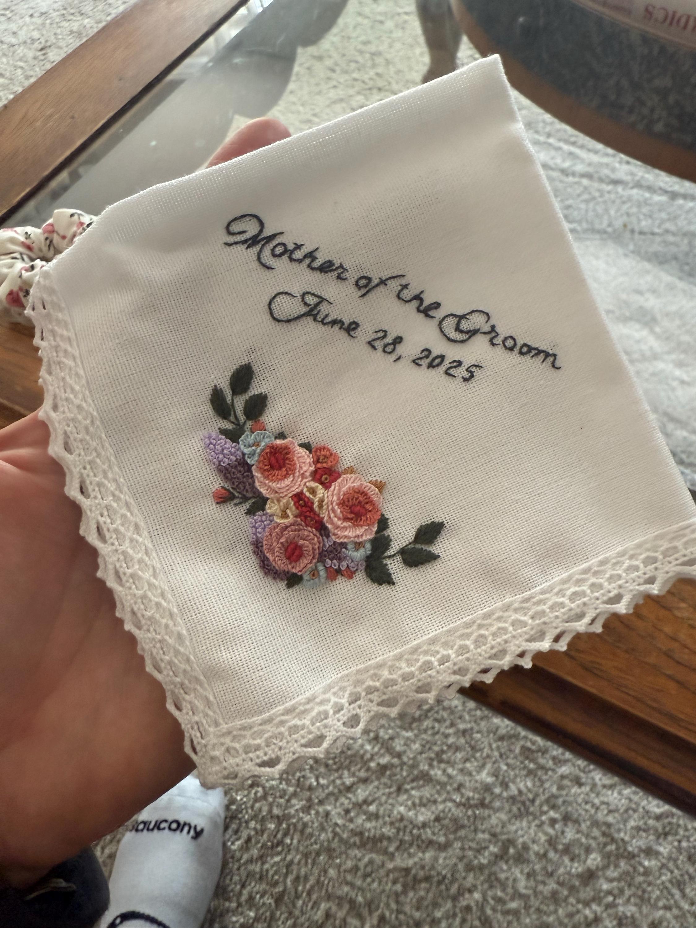 - Gift of Art: Looking for the perfect gift for a loved one? My hand-embroidered handkerchief set is an ideal gift for mom, mother of the bride, mother of the groom, wedding party members, grandmother, or a heartfelt gesture for embroidery lovers—a valuable and significant token, effortlessly suited for anyone.