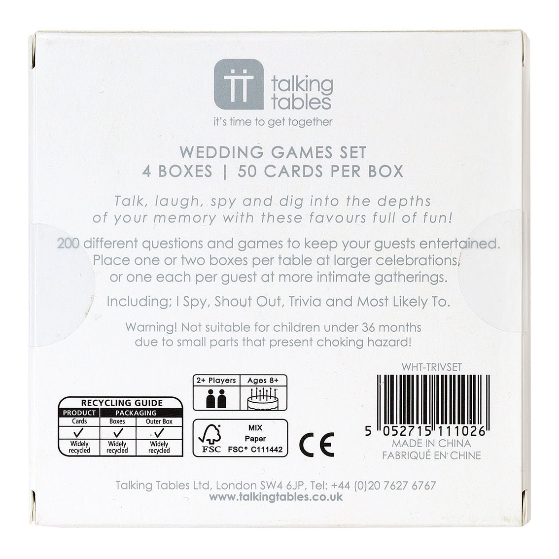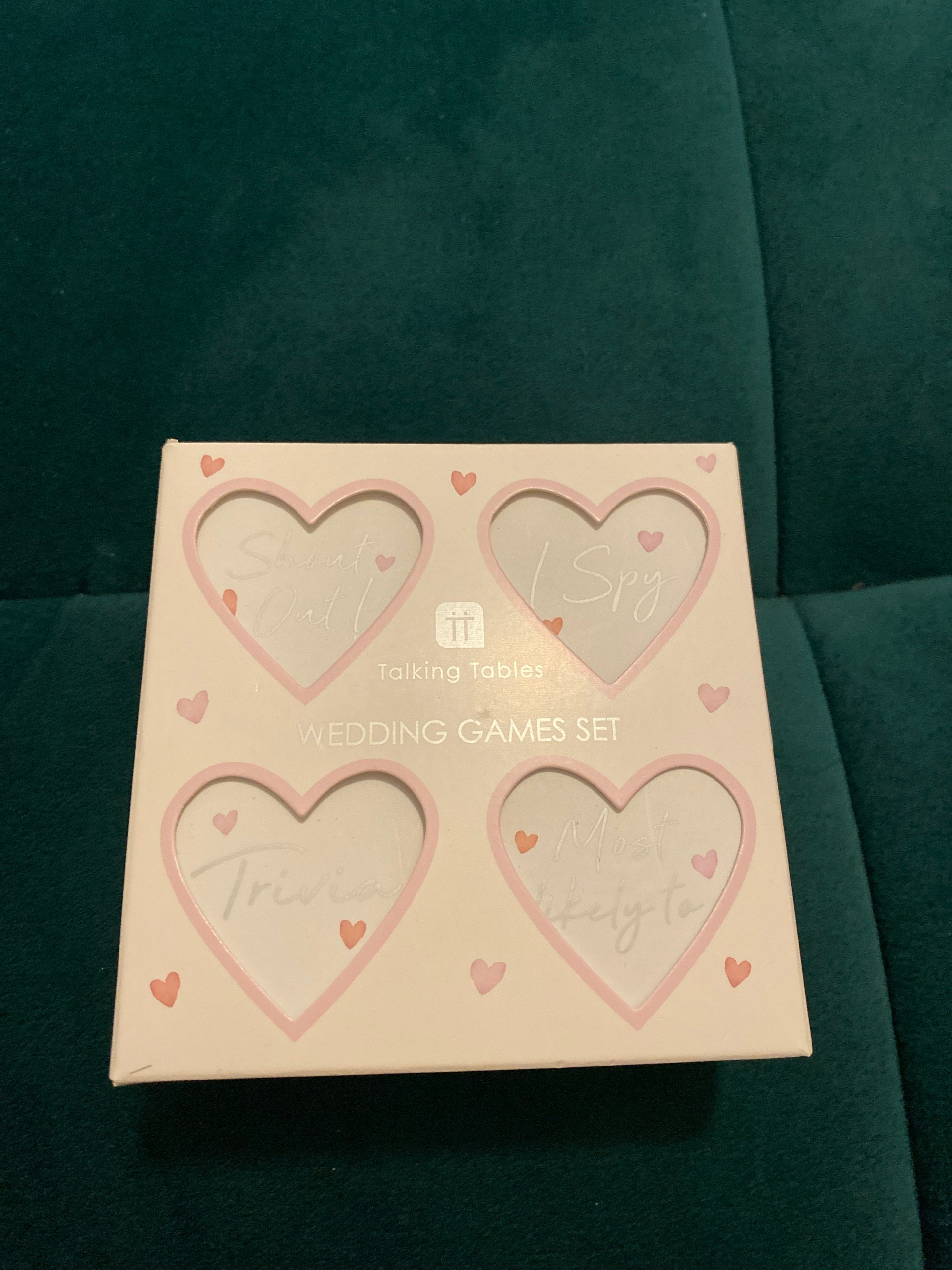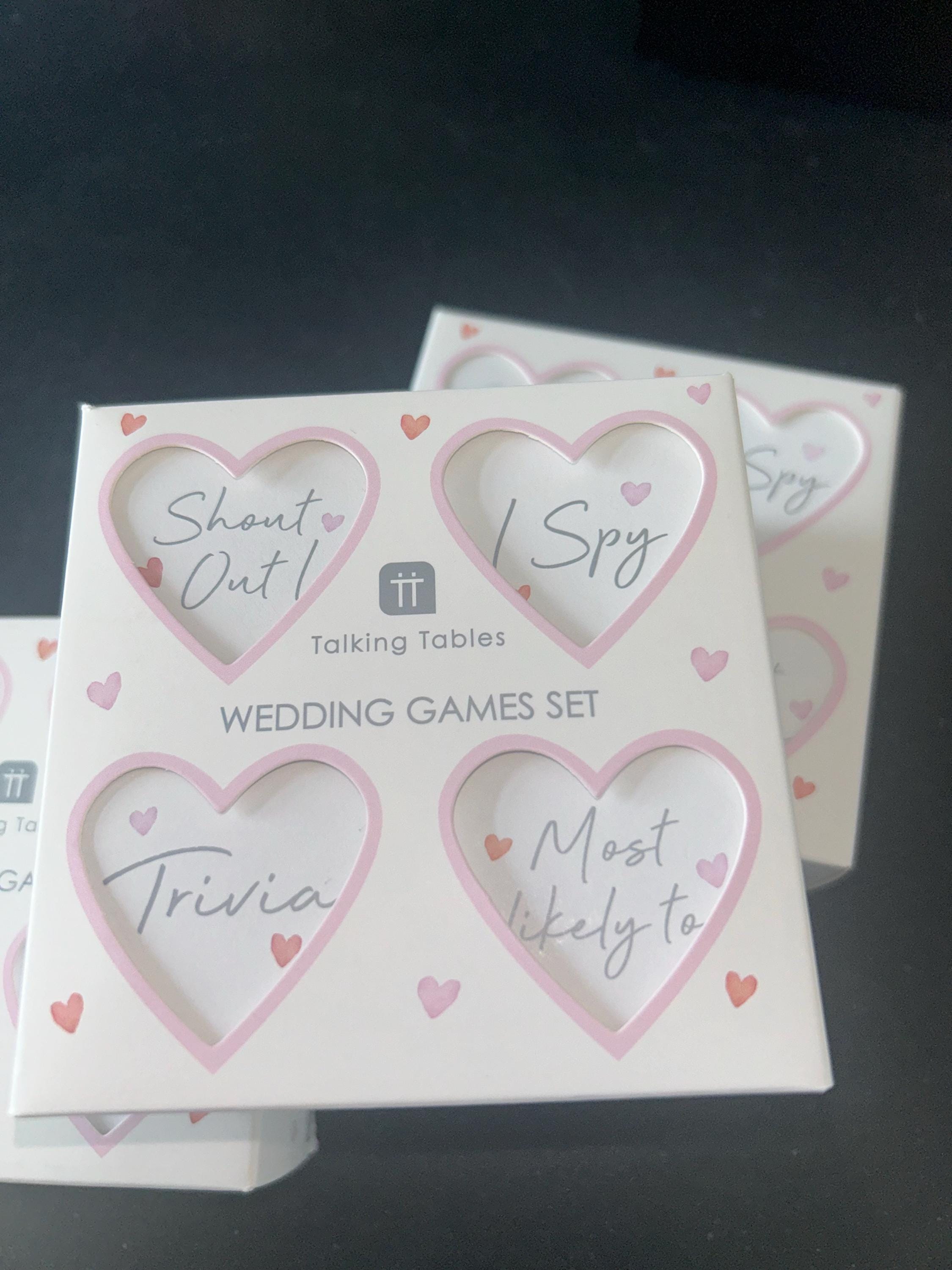 4 boxes of games including wedding editions of I spy, Most likely to, Shout out and Trivia.
